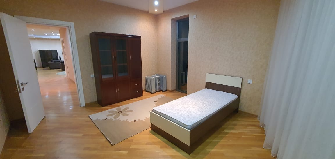 СДАЙОТСА КВАРТИРА СО ВСЕЙ ДОРОГОЙ МЕБЕЛЬЮ И БЫТОВОЙ ТЕХНИКОЙ. Просторные комнаты, высокие потолки, витражные окна, пол паркет высшего качества, светлая кухня, дорогая встроенная кухонная мебель, ТЕПЛЫЙ ПОЛ, 2 санузла, ванная- душ кабин, джакузи дорогими аксессуарами, центральная отопительная система, свет, газ, вода постоянно, 3 скоростные лифты из фирмы "МИТСУБИШИ"-ЛИФТЫ С КАРТОМ РАБОТАЮТ, 2-х этажный подземный гараж, видео наблюдение… Развитая инфраструктура-рядом школа, детский сад, автобусные остановки, метро, магазины, маркеты итд…Подробнее по телефону.