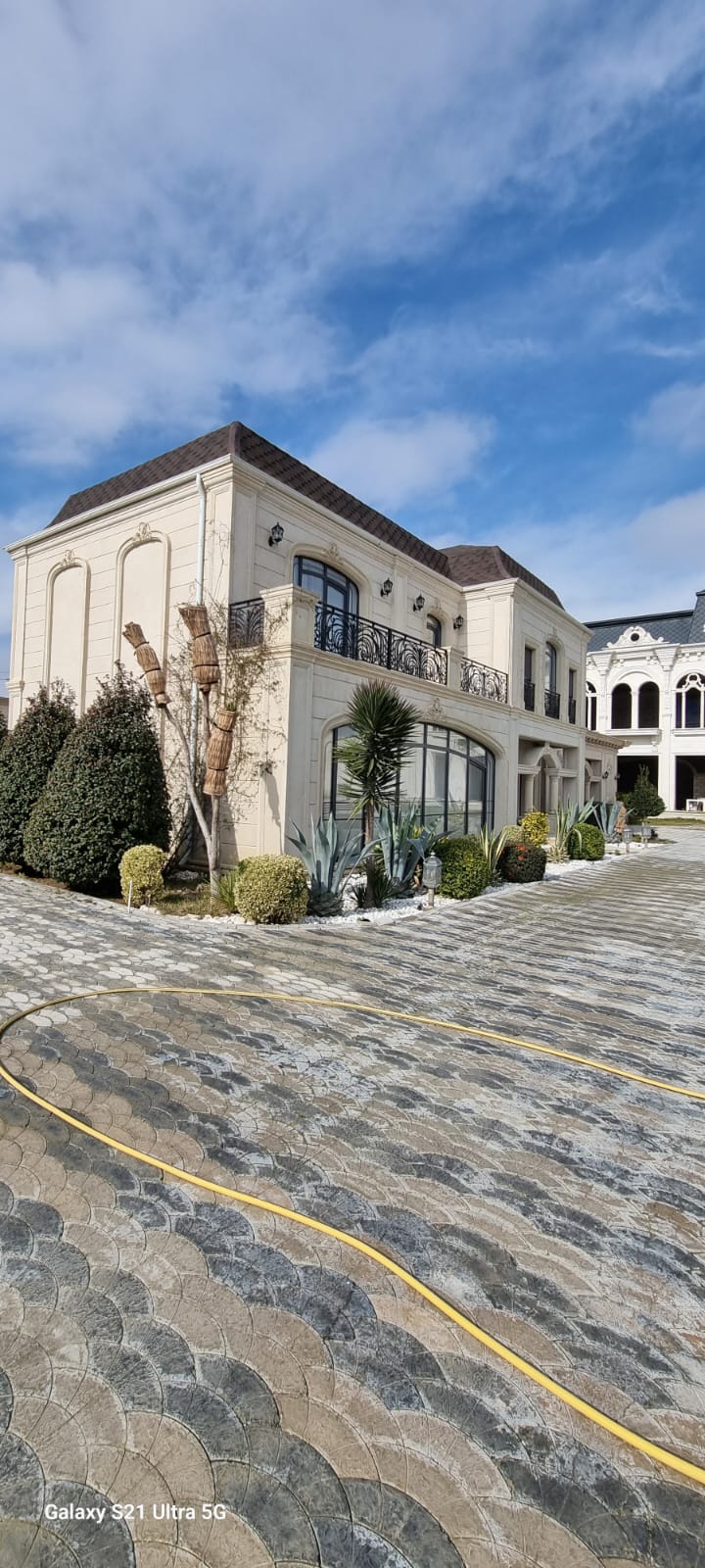 Həyəti tamet daşlarla döşənilib.
