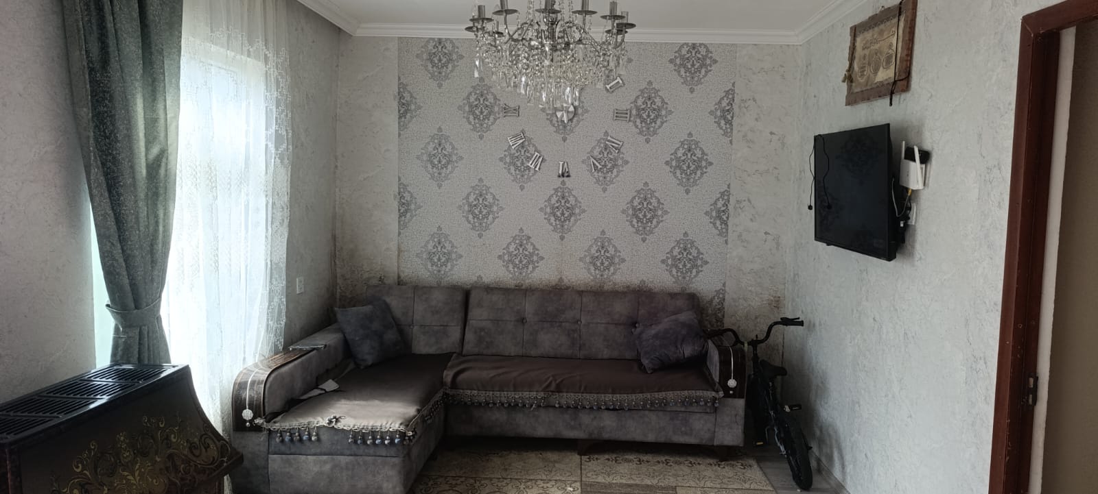 Ümumi tikili sahəsi 70 kv.m olan ev dəhliz, 1 qonaq otağı, mətbəx, 1 yataq otağı və sanuzeldən ibarətdir..