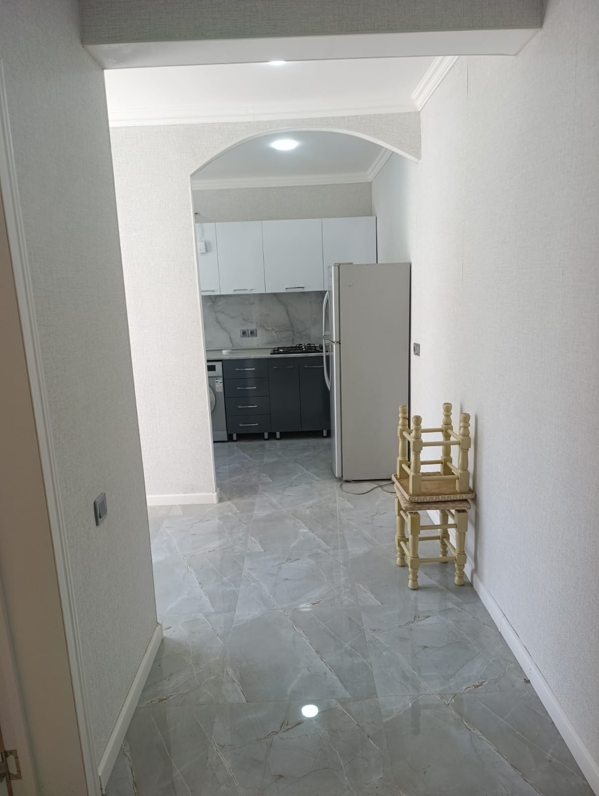 Ümumi tikili sahəsi 75 kv/metr olan ev dəhliz,qonaq otağı, 1 yataq otağı, mətbəx və 1 sanuzeldən ibarətdir.. Evin istilik sistemi kombidir..