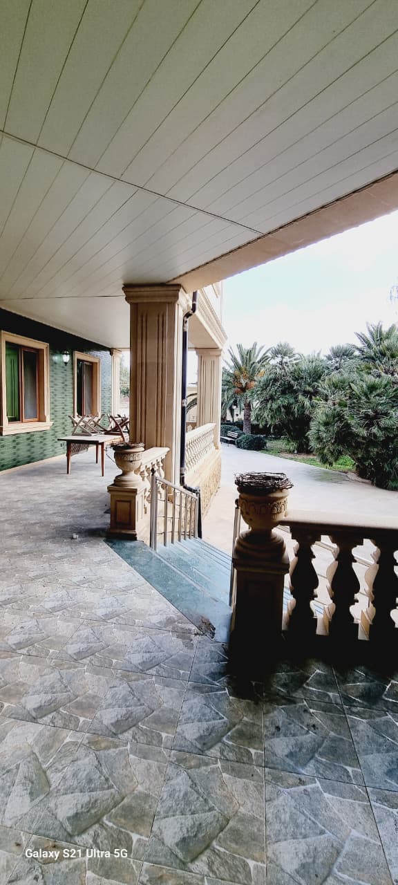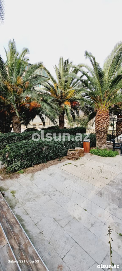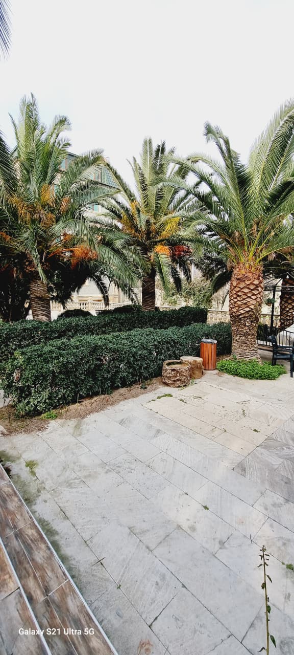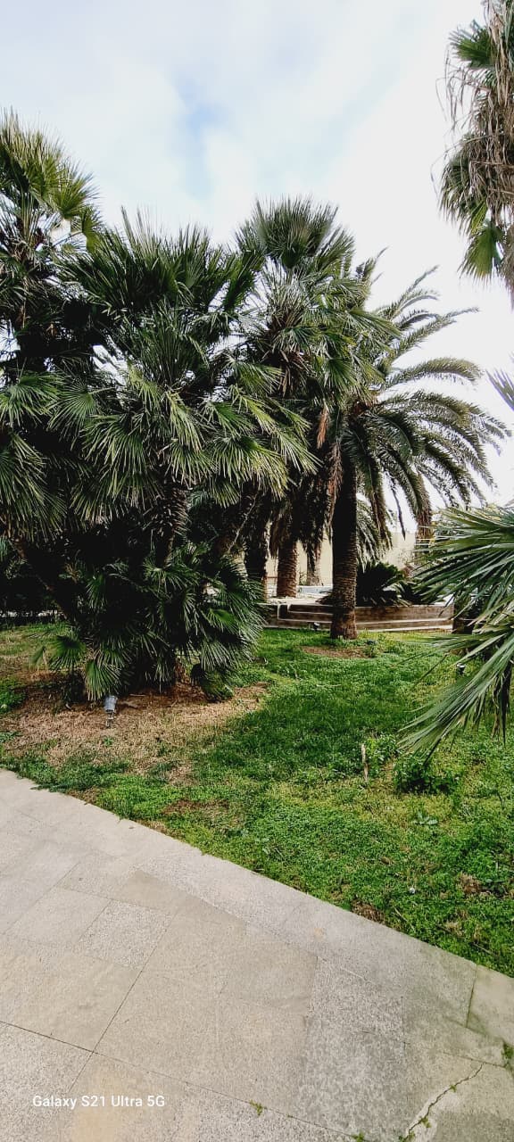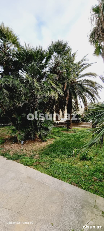 Həyətdə palma ağacları və dekorativ ağaclar, söhbətgah (besedka), geniş istirahət zonaları