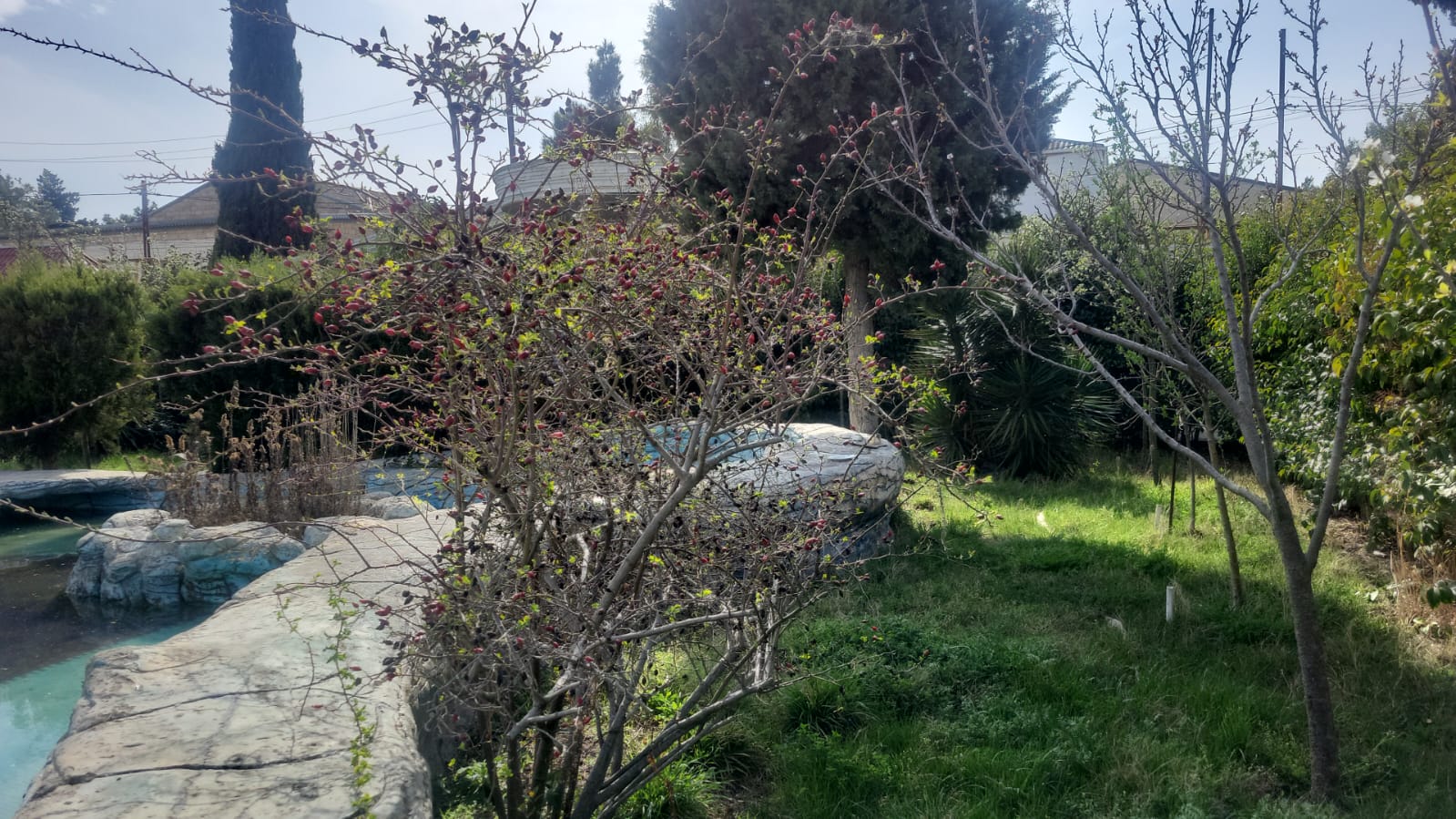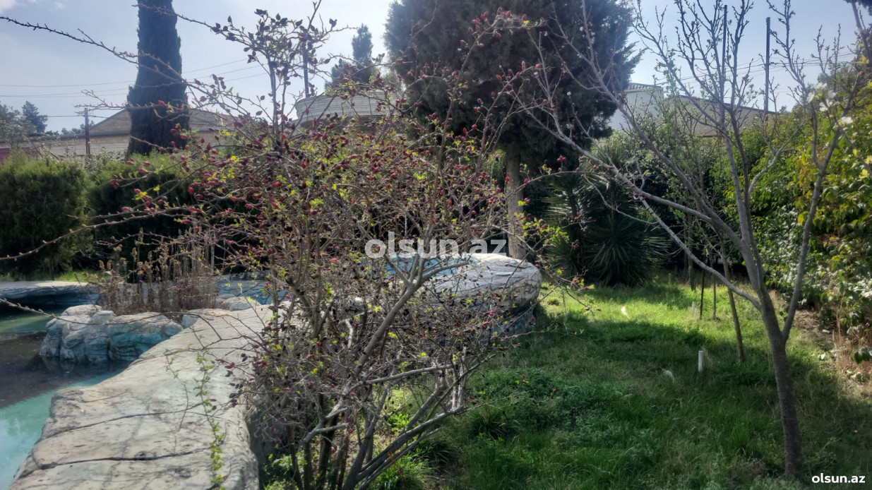Həyətində meyvə ağacları , dekorativ ağaclar əkilib...