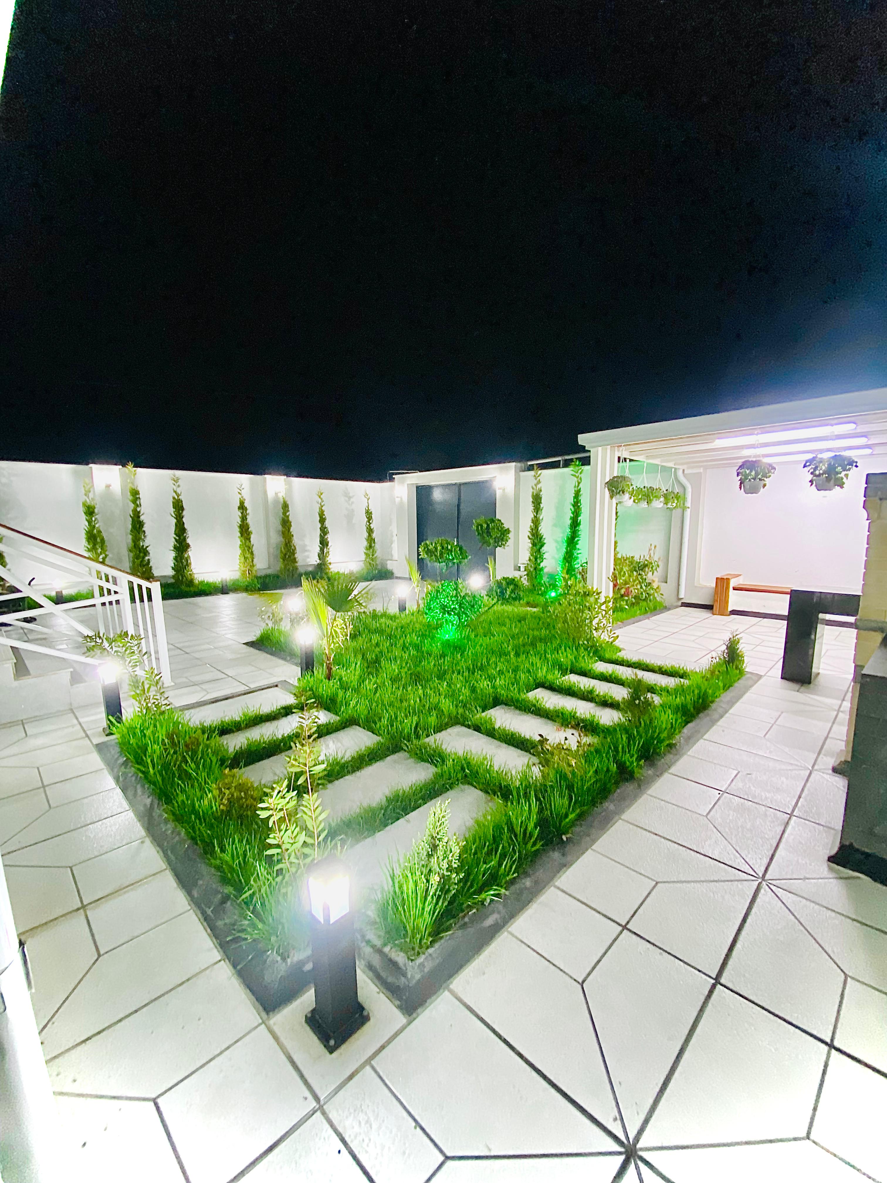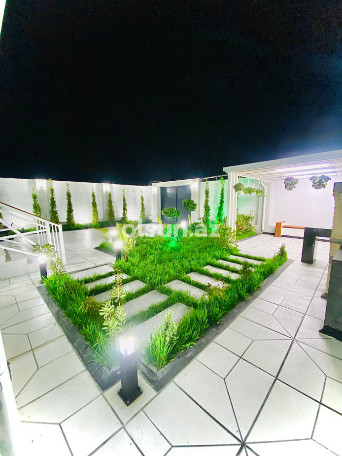 Həyətində manqalnisi, besetkası, yaşıllıq ərazisi var. Qapısına kimi asfaltla örtülüb. Ətrafında baxça, aptek, marketlər və s. var.
