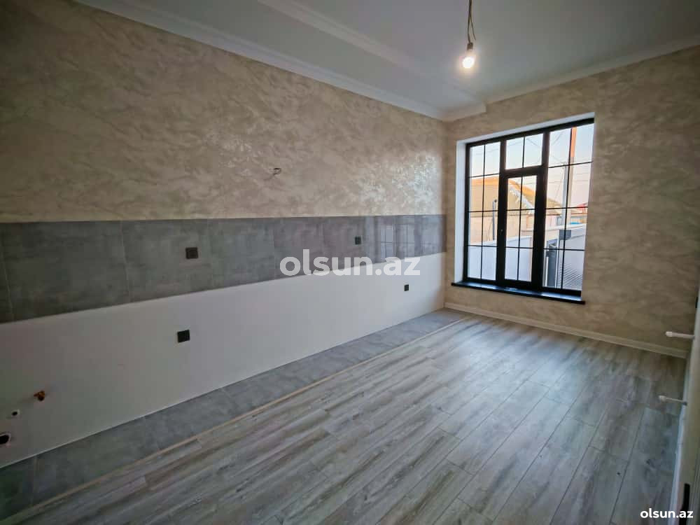 Ev 1 qonaq otağı, 2 yataq otağı, 1 mətbəx, 1 sanuzeldən ibarətdir. Qiymət: 110.000 AZN.