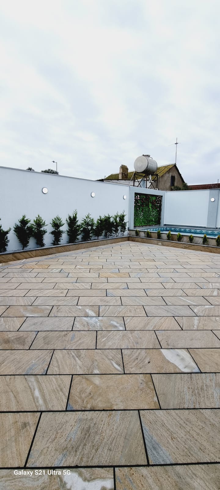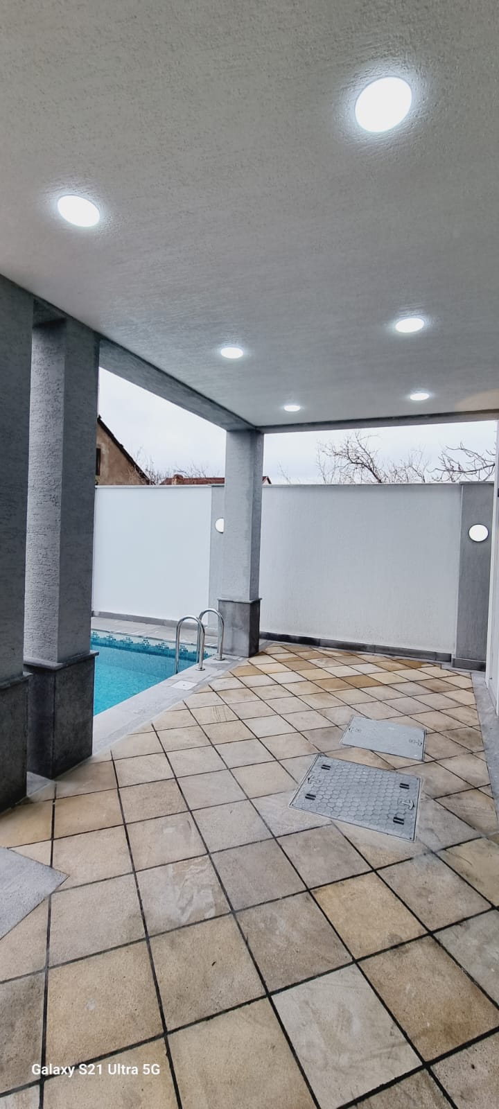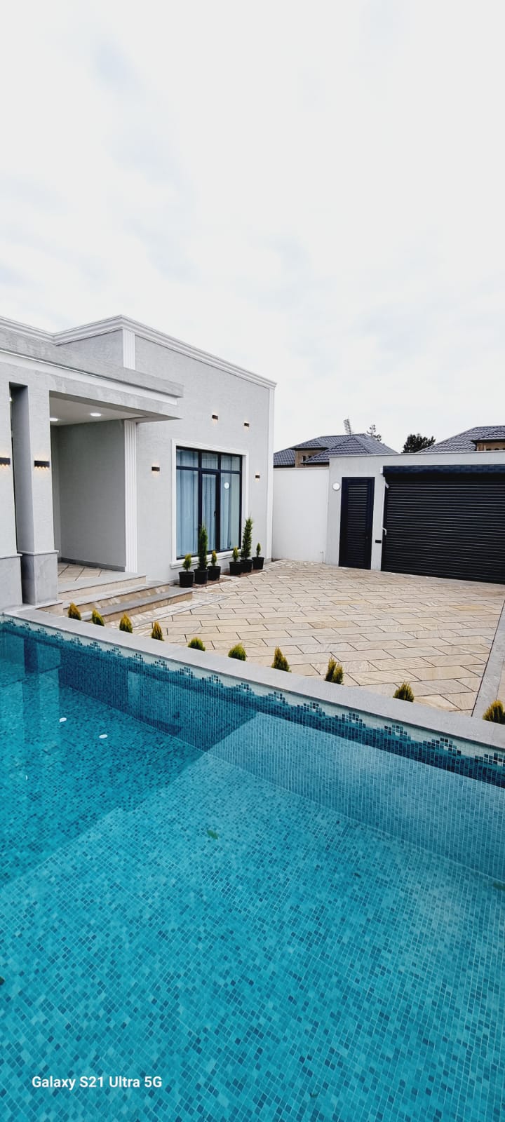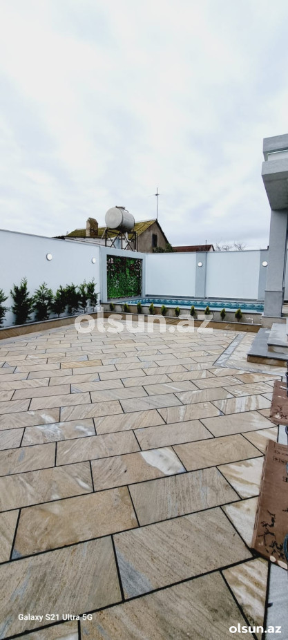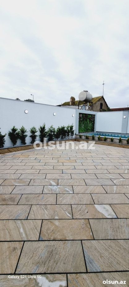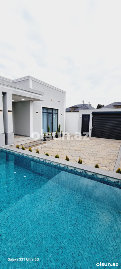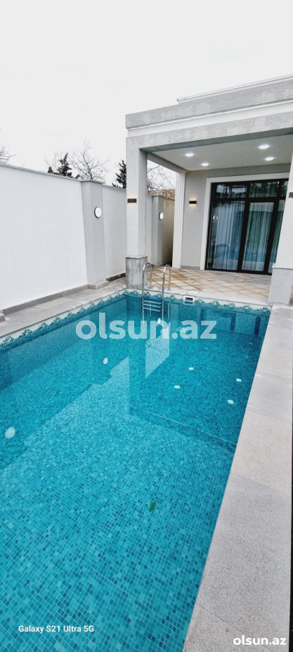 Həyətində filtirli hovuzu , verandası , dekorativ ağacları var..