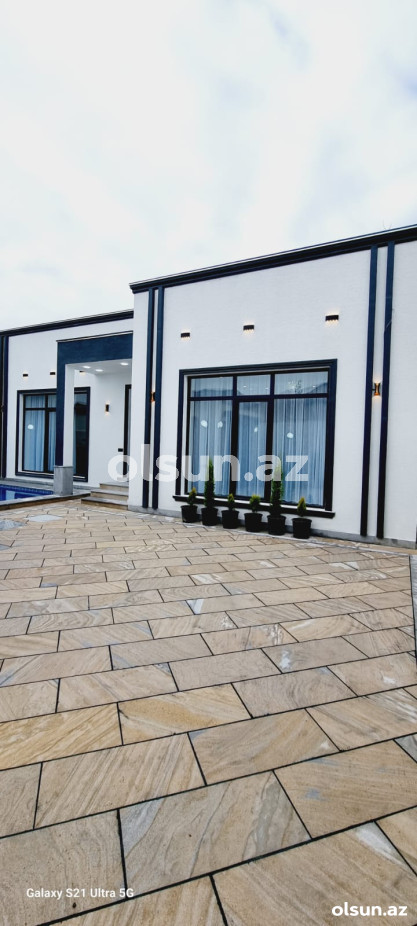 Həyətində filtirli hovuzu , verandası , dekorativ ağacları var..