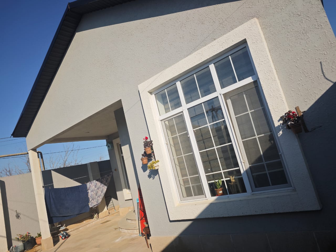 Həyət sahəsi tamet daşlarla səliqəli şəkildə döşənib və baxımlıdır. Həyətdə dekorativ şam ağacları əkilib, bu da əraziyə xüsusi gözəllik və yaşıllıq qatır. Ümumilikdə ev çox sakit, təmiz və yaşayış üçün əlverişli bir məkanda yerləşir.