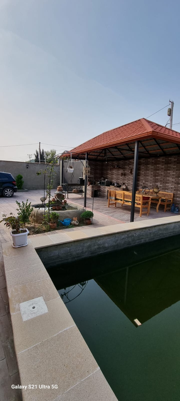 Həyətində : manqalnisi , fontanı , yaşıl zonası, besetkası , filtrli hovuzu vardır.