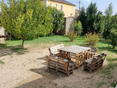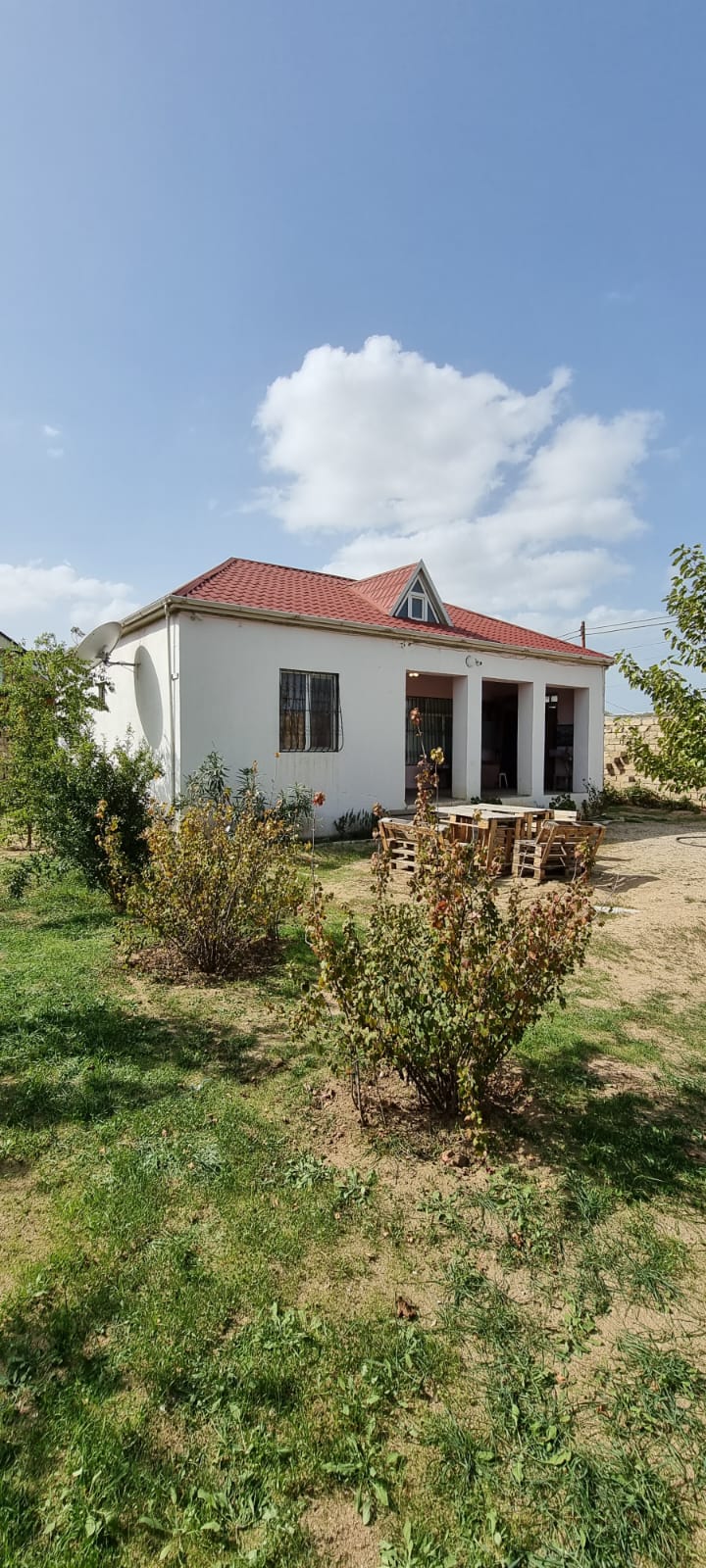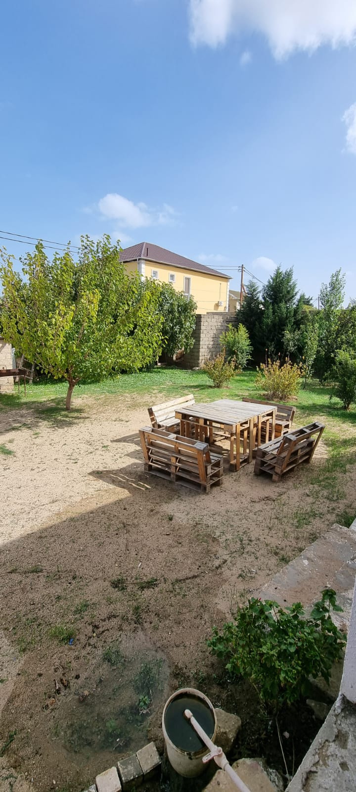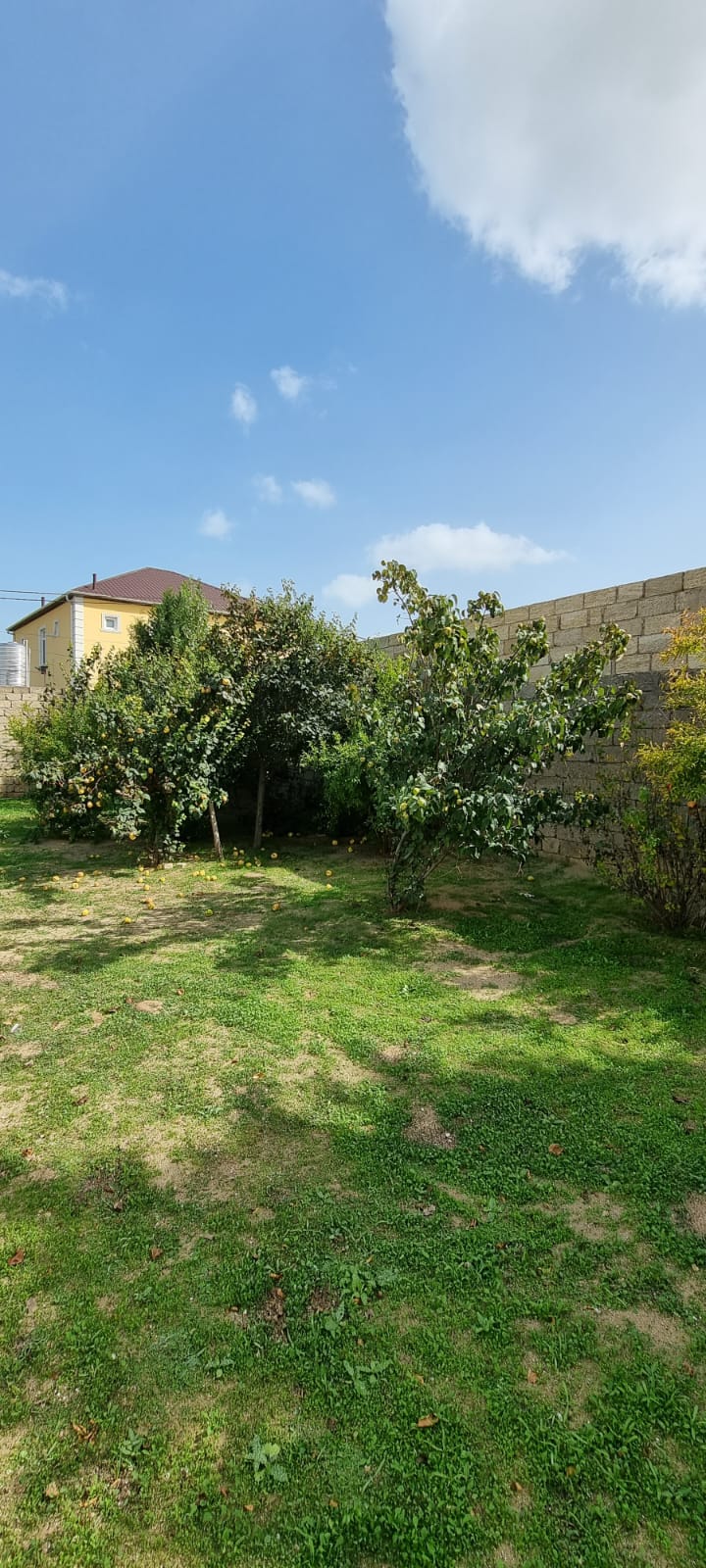Həyəti yaşıllıqla əhatə olunub , meyvə ağacları əkilib.