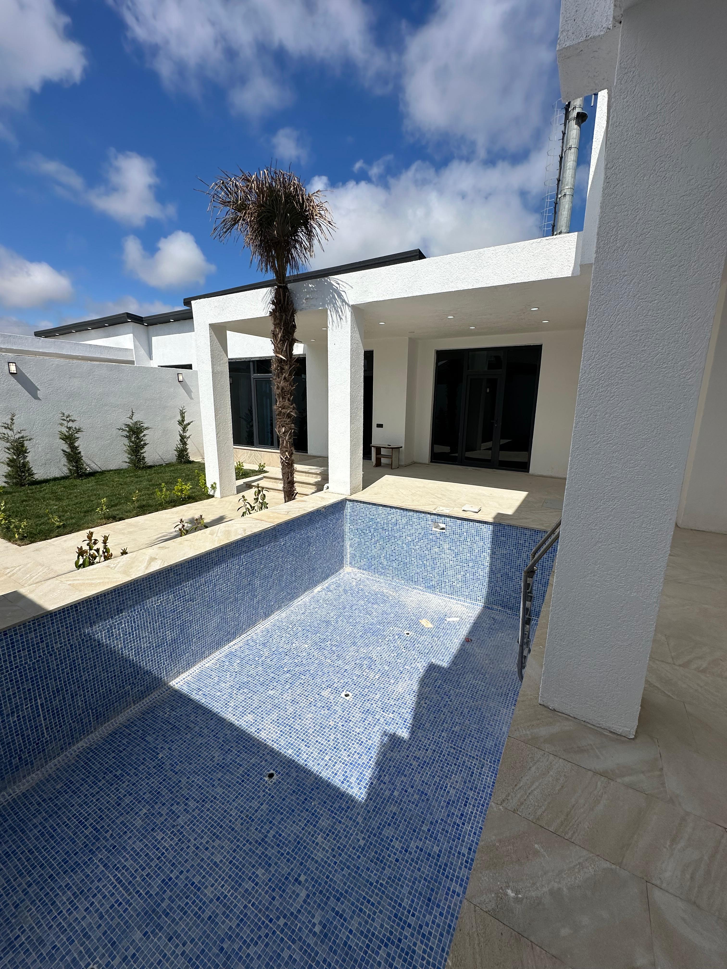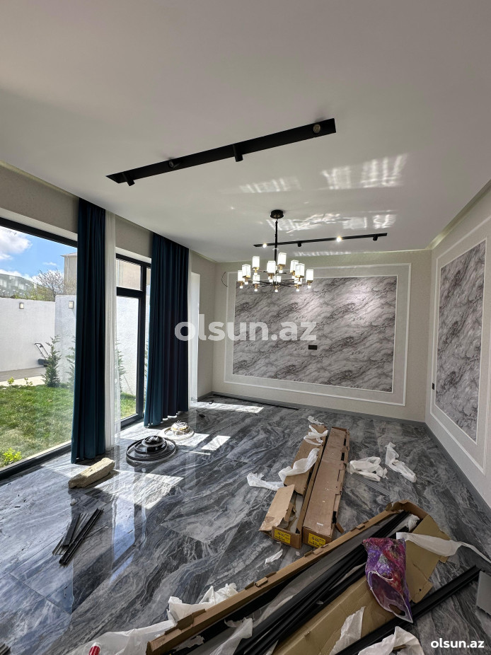 Ev müasir üslubda təmir olunub, rahat yaşayış üçün hər şey düşünülüb. Həyəti geniş və səliqəlidir, tamet daşlarla döşənib. İçərisində filtrli hovuz, yaşıllıq sahə, dekorativ palma və şam ağacları var. Həmçinin manqal zonası da mövcuddur, istirahət üçün ideal şərait yaradılıb.