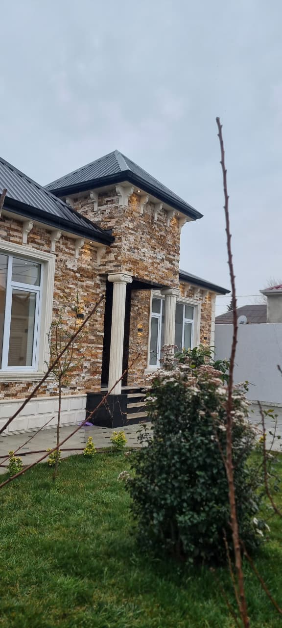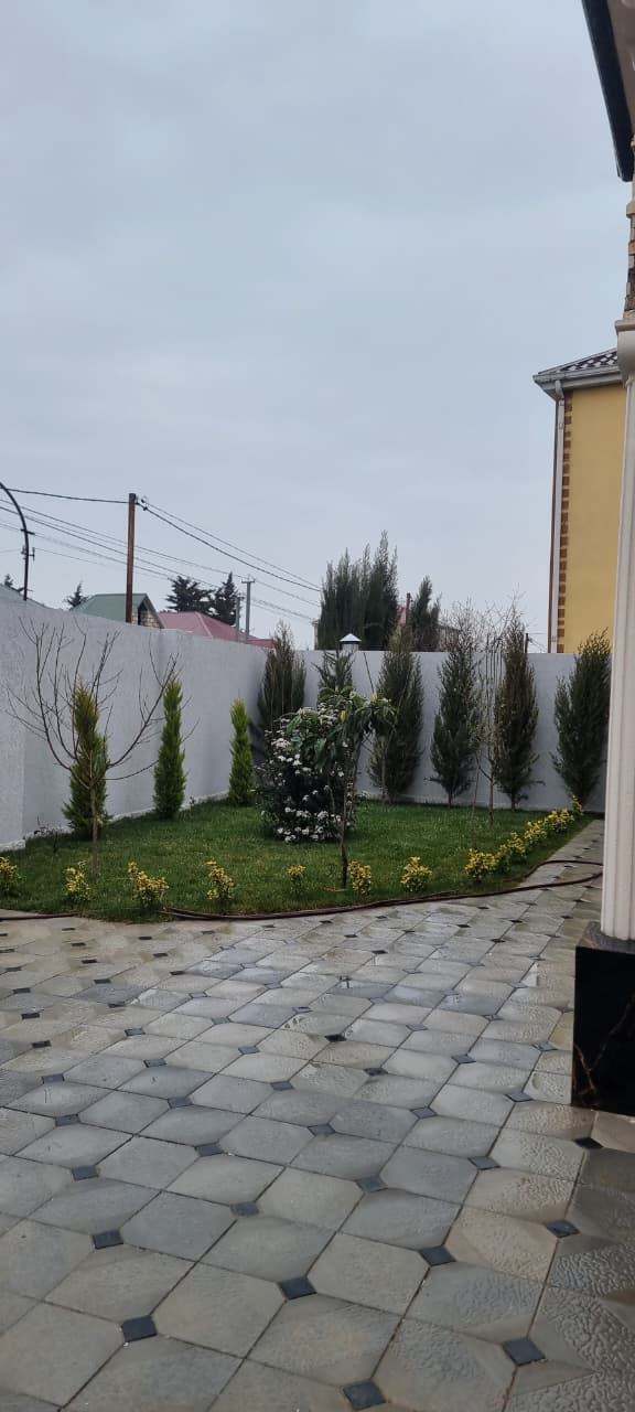Həyət hissəsi xüsusi zövqlə hazırlanıb – dekorativ ağaclar, dekorativ daşlarla dizayn olunmuş sahə evə daha gözəl görünüş verir. Həyətə giriş pultla idarə olunan jalüz qapı vasitəsilədir ki, bu da rahatlıq baxımından üstünlükdür.