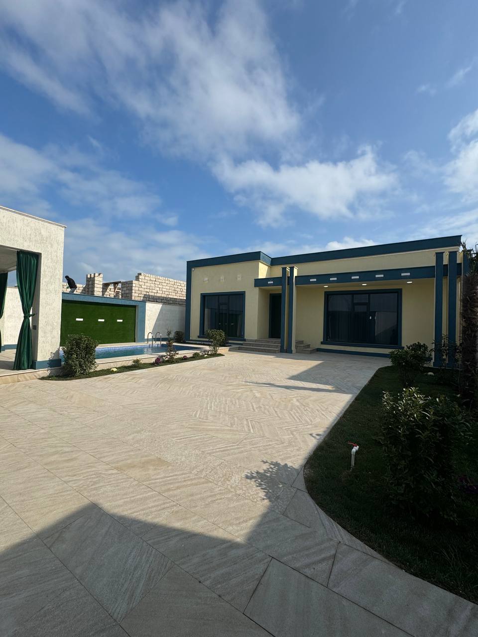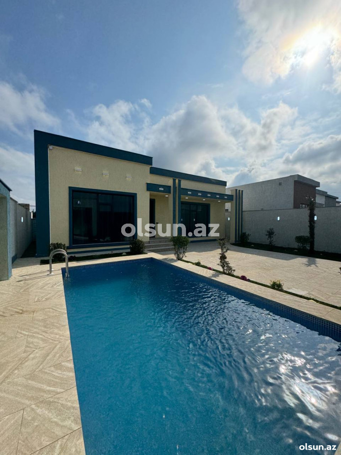 Həyətində filterli hovuzu, manqalı, söhbətgahı, maşın saxlamaq üçün sahəsi, yaşıllıq ərazisi və müxtəlif növdə dekorativ ağacları var.