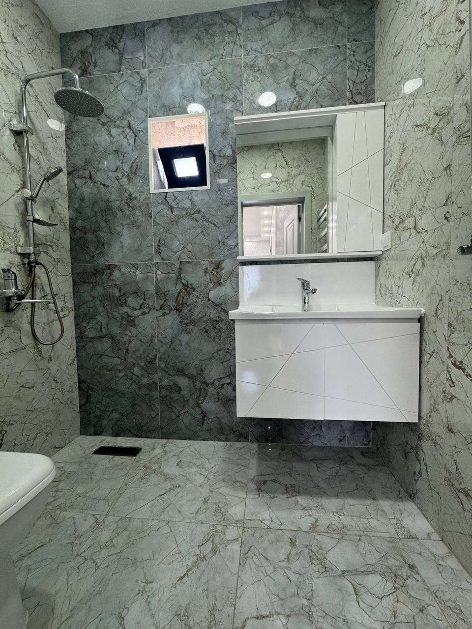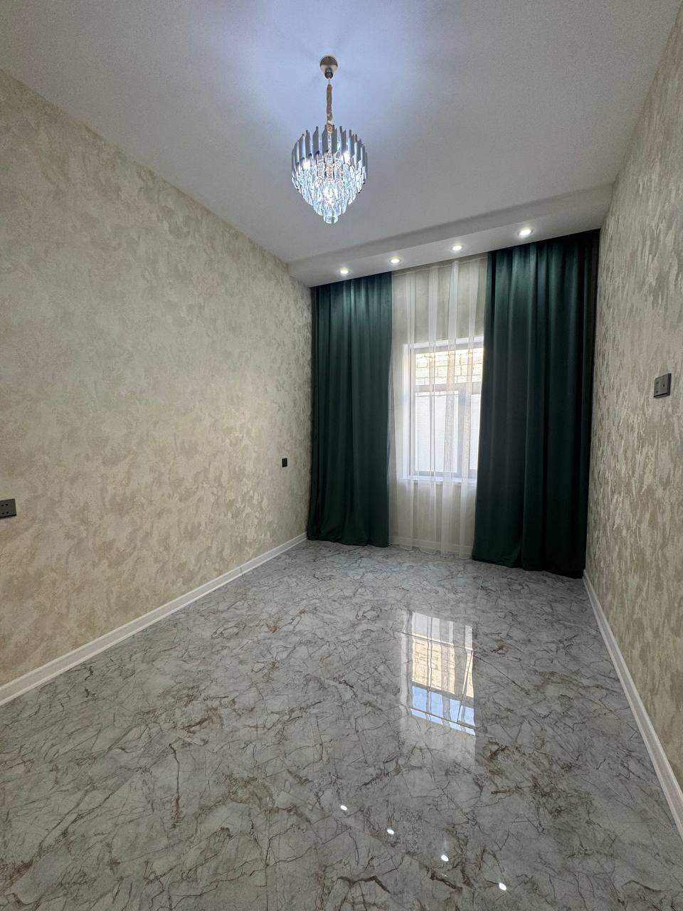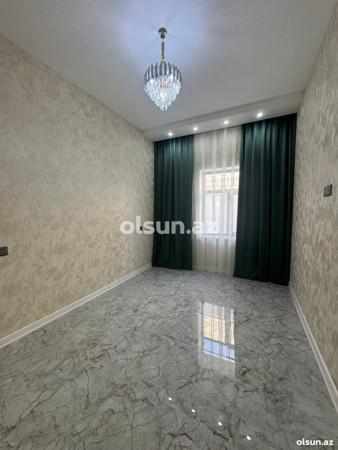 Mətbəx mebeli, hamam aksesuarları, pərdələri, çılçıraqlar quraşdırılıb.