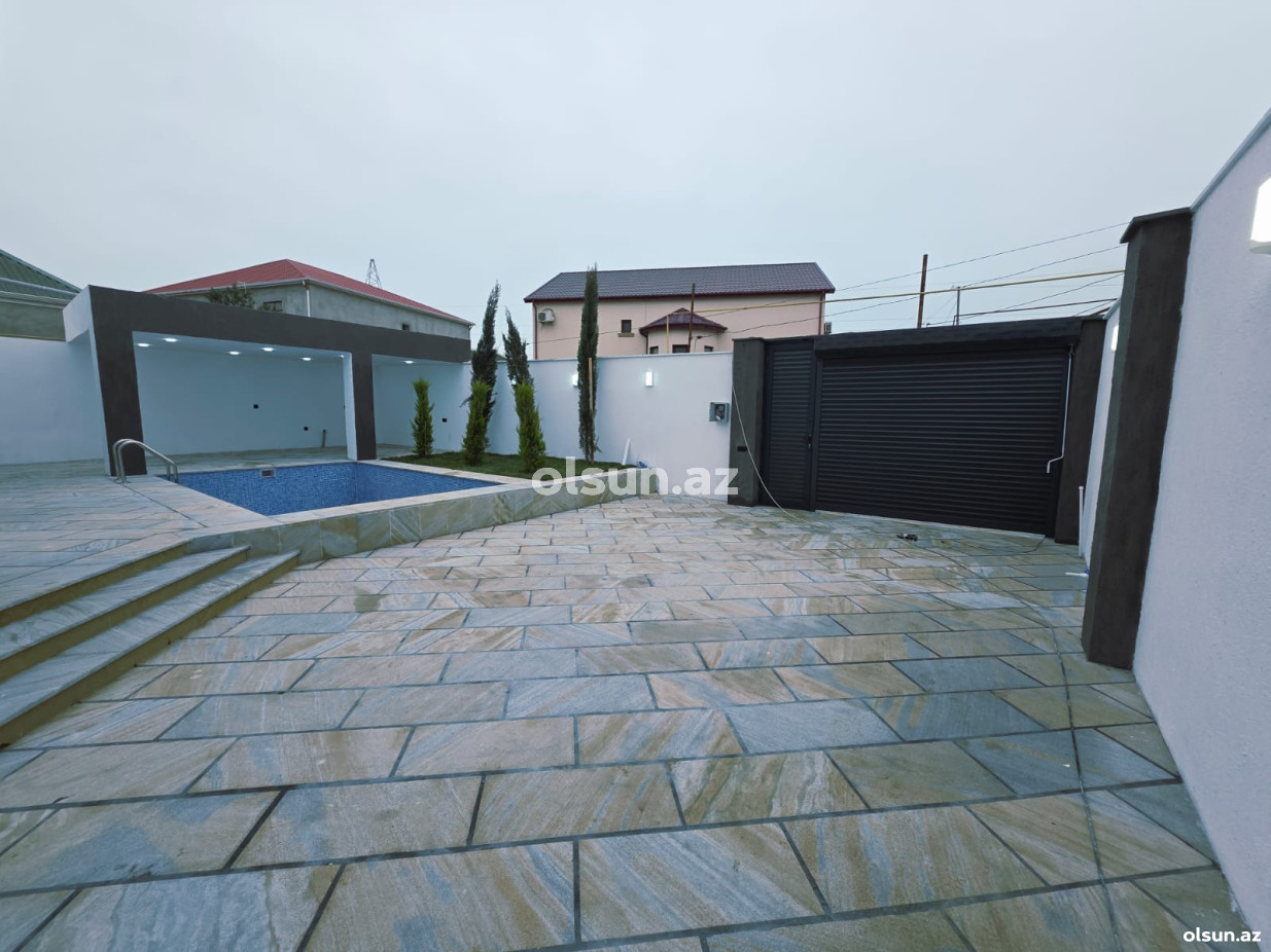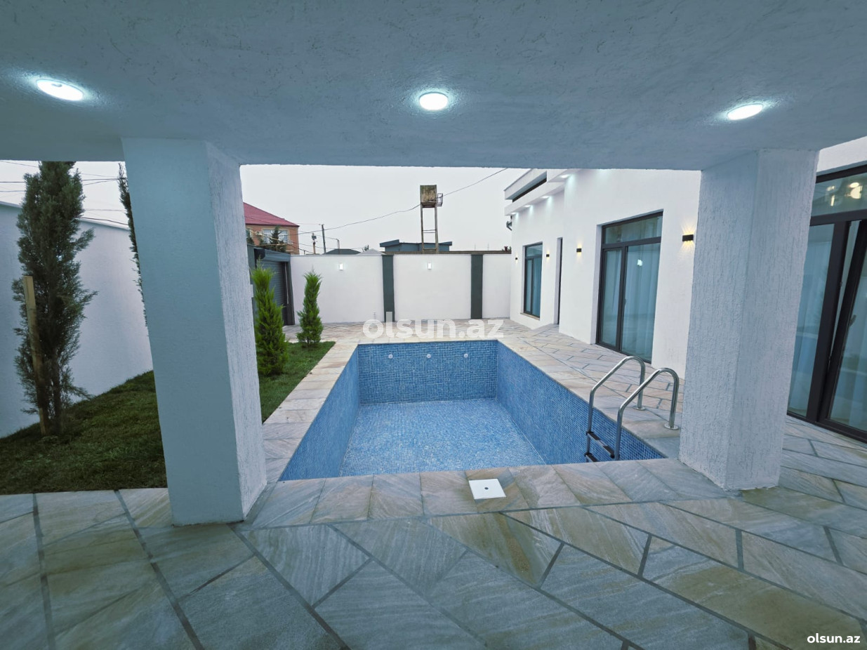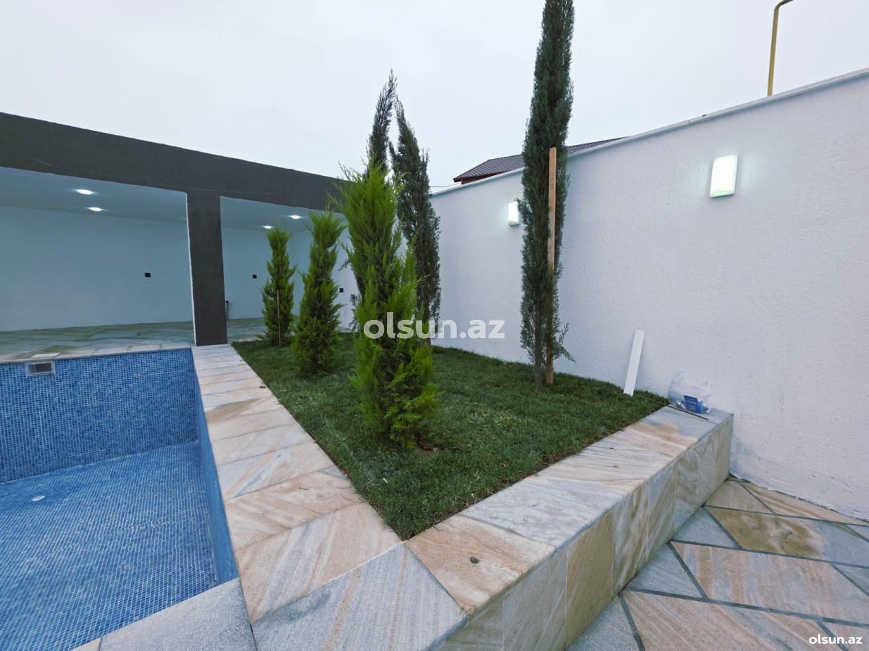 Həyətində hovuz, sanuzel, manqalxana mövcuddur