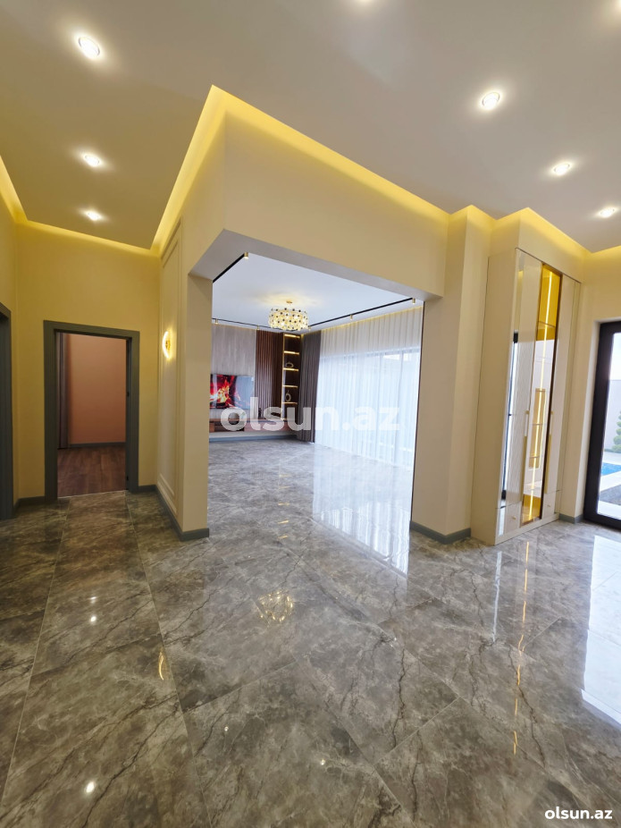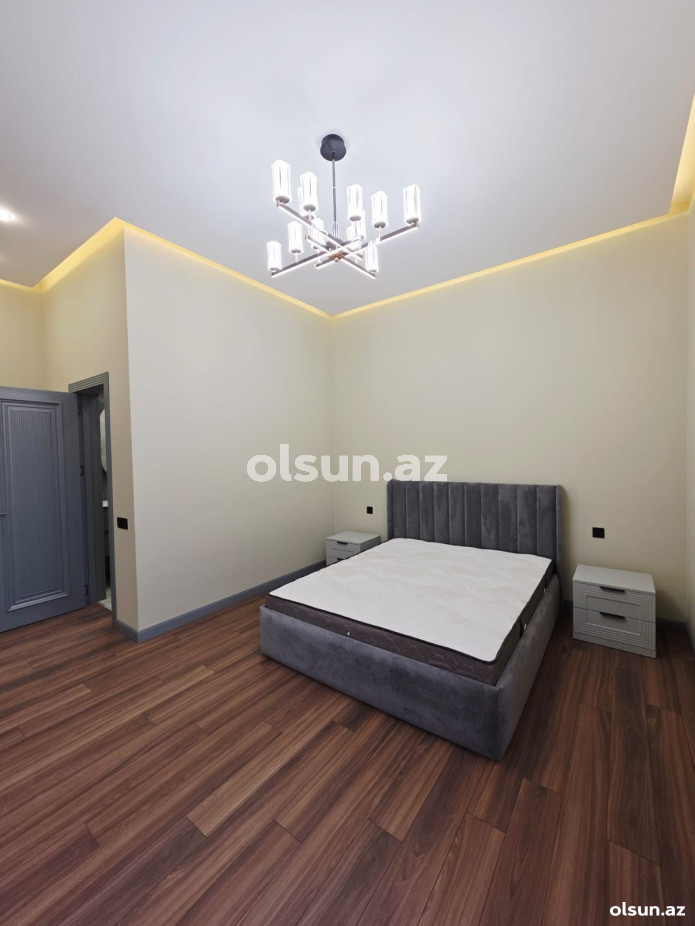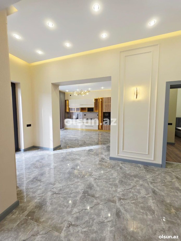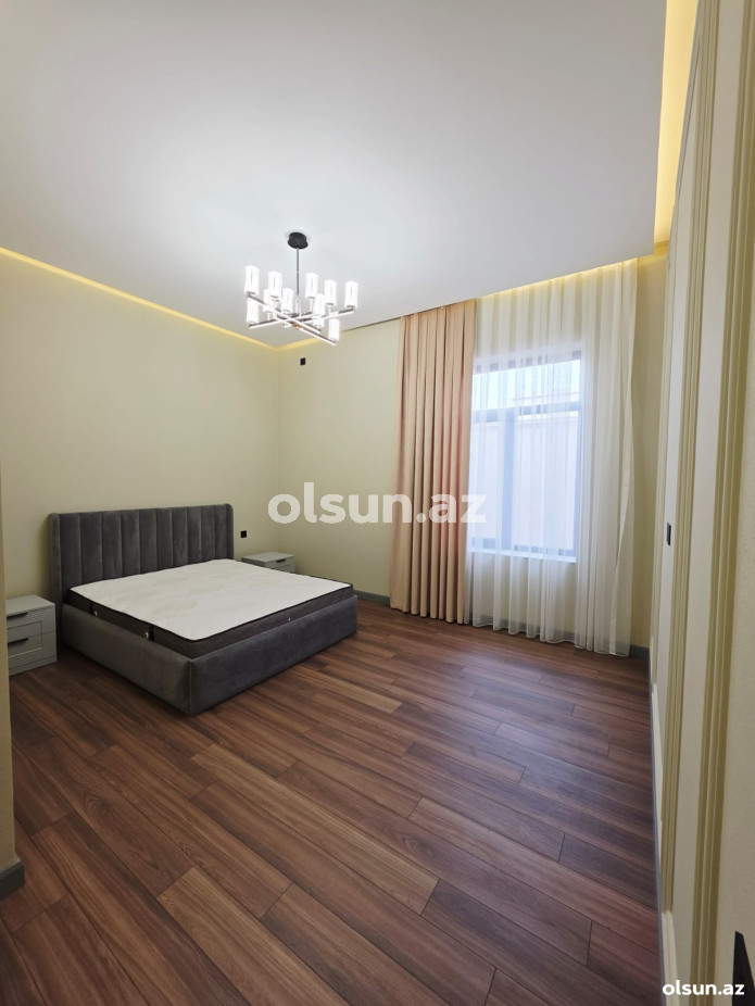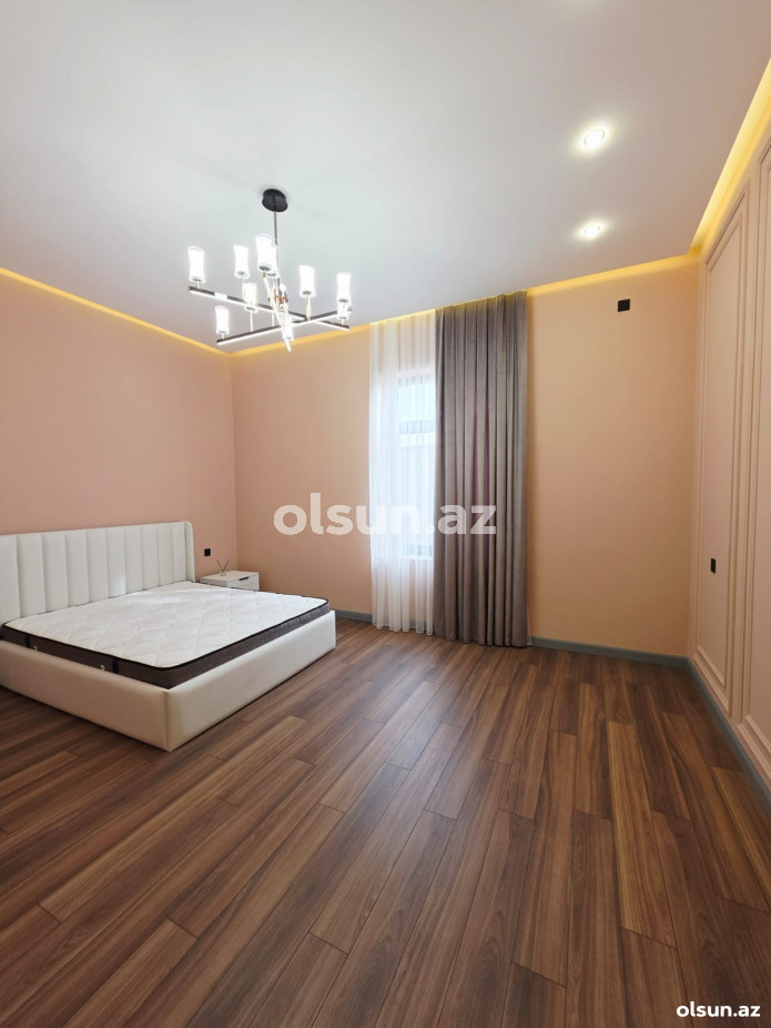 Ev:3 yataq otağı,1 qonaq otağı, 1 mətbəx, qarderob, 2+1 sanitar qovşağından ibarətdir.