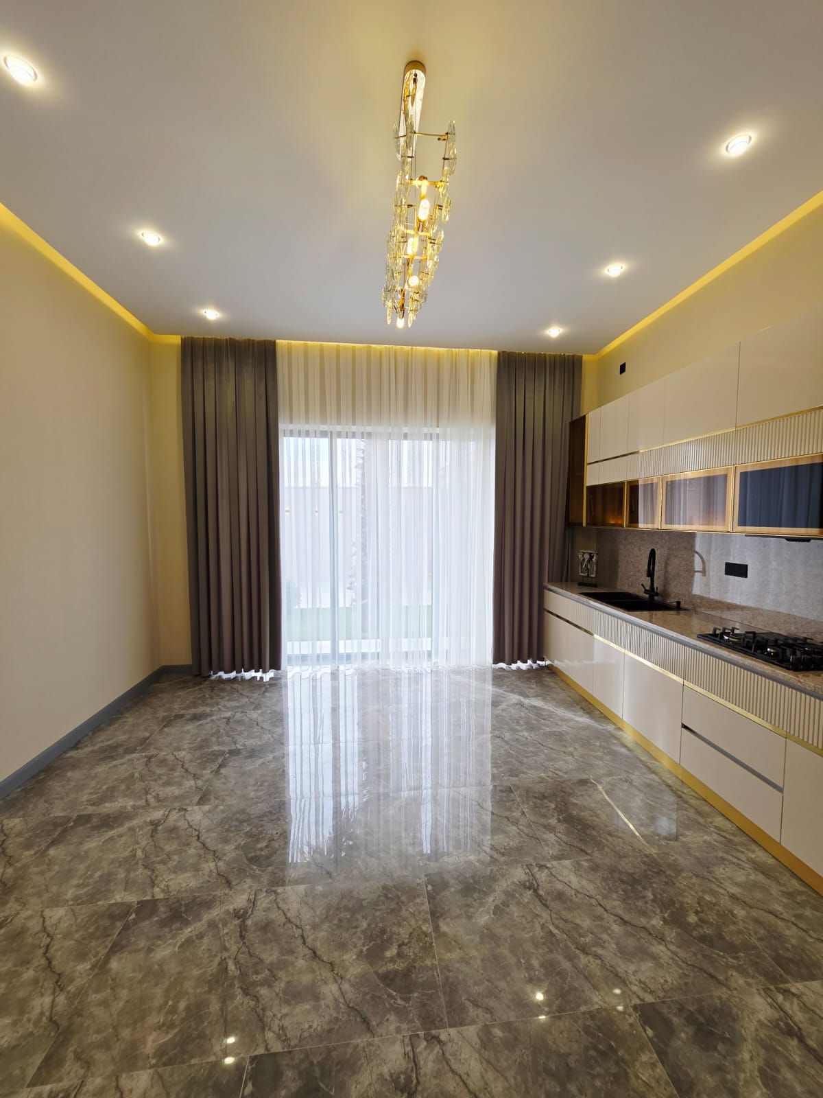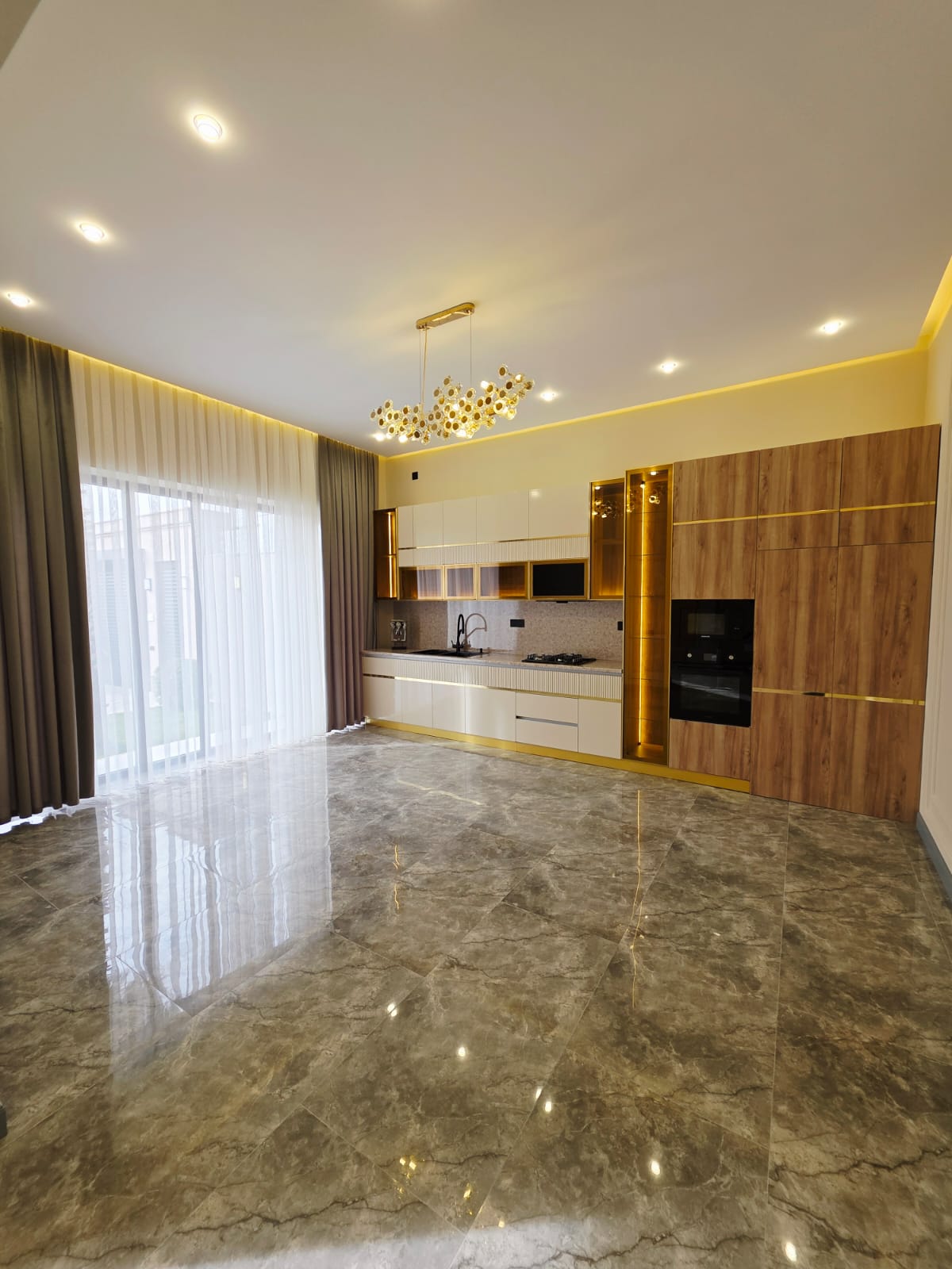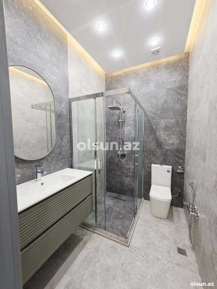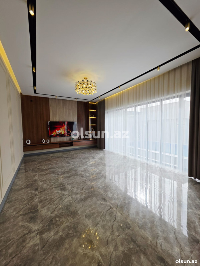 Ev:3 yataq otağı,1 qonaq otağı, 1 mətbəx, qarderob, 2+1 sanitar qovşağından ibarətdir.