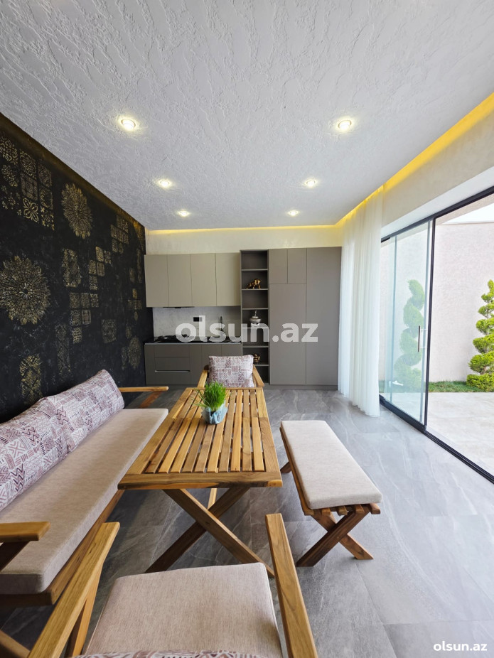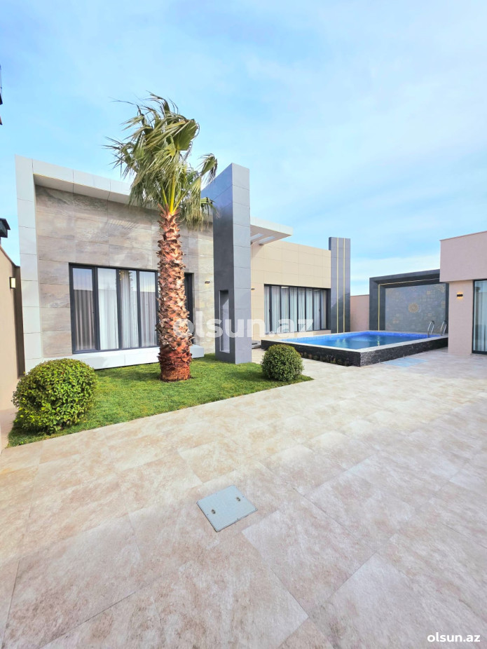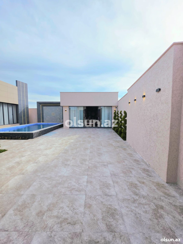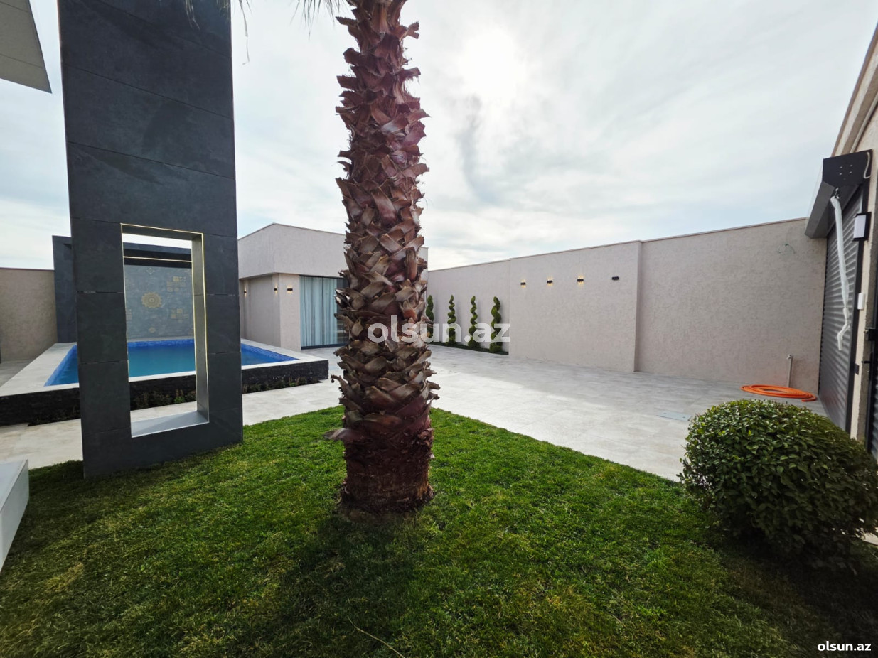 Həyətində hovuz, sanuzel, yay-qış mətbəxi, manqalxana mövcuddur. Həyəti tamet daşlarla döşənilib.