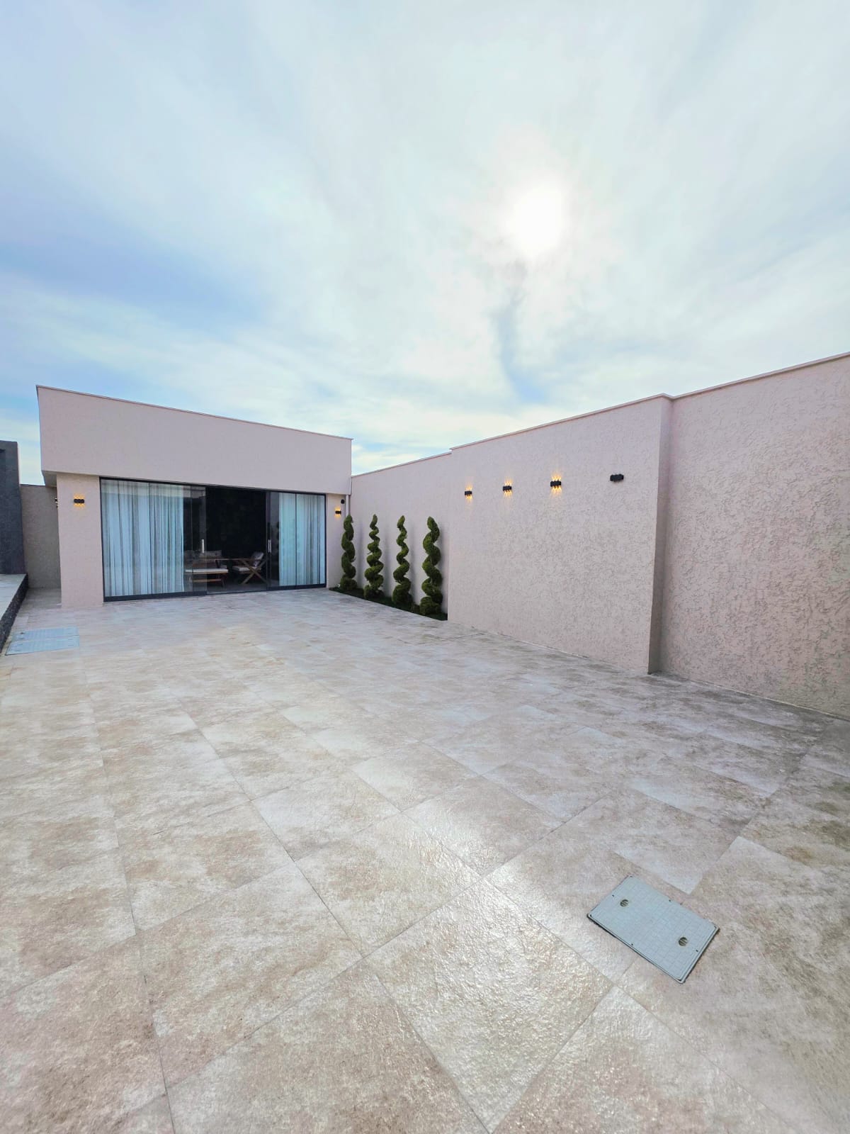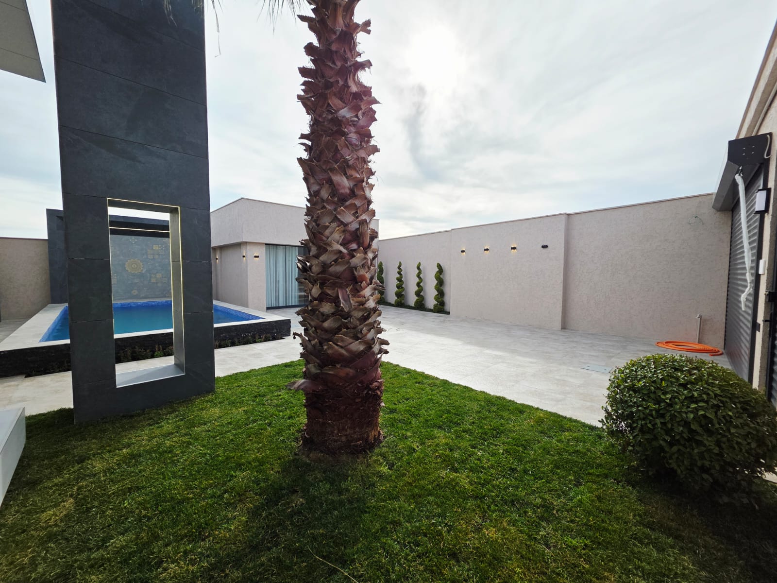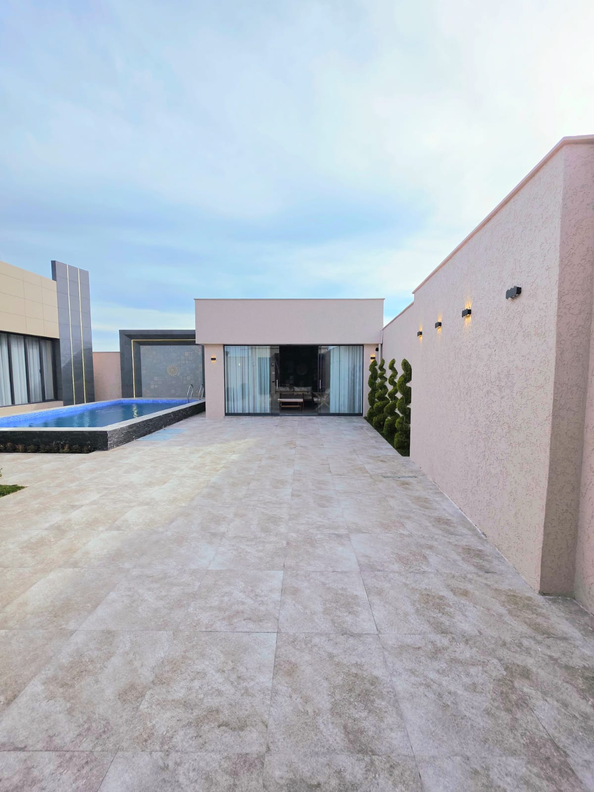 Həyətində hovuz, sanuzel, yay-qış mətbəxi, manqalxana mövcuddur. Həyəti tamet daşlarla döşənilib.