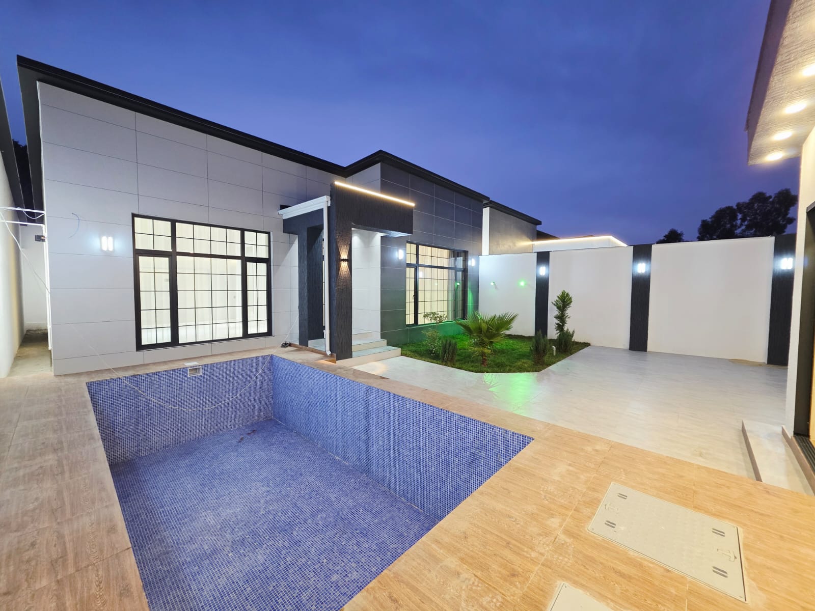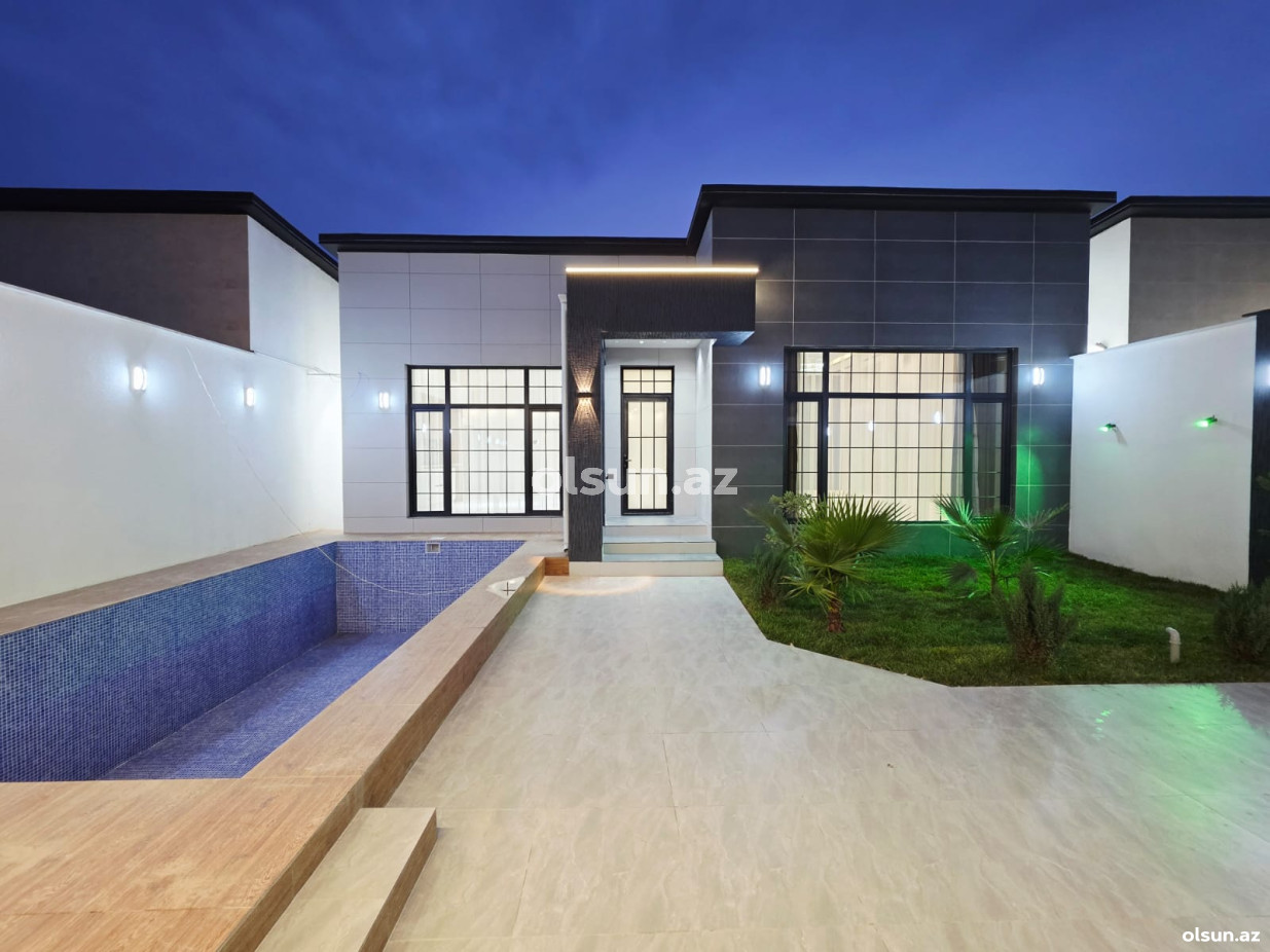 Həyətində hovuz, besedka, dekorativ ağaclar, cambalkon, manqalni, işıqlandırması,mövcuddur