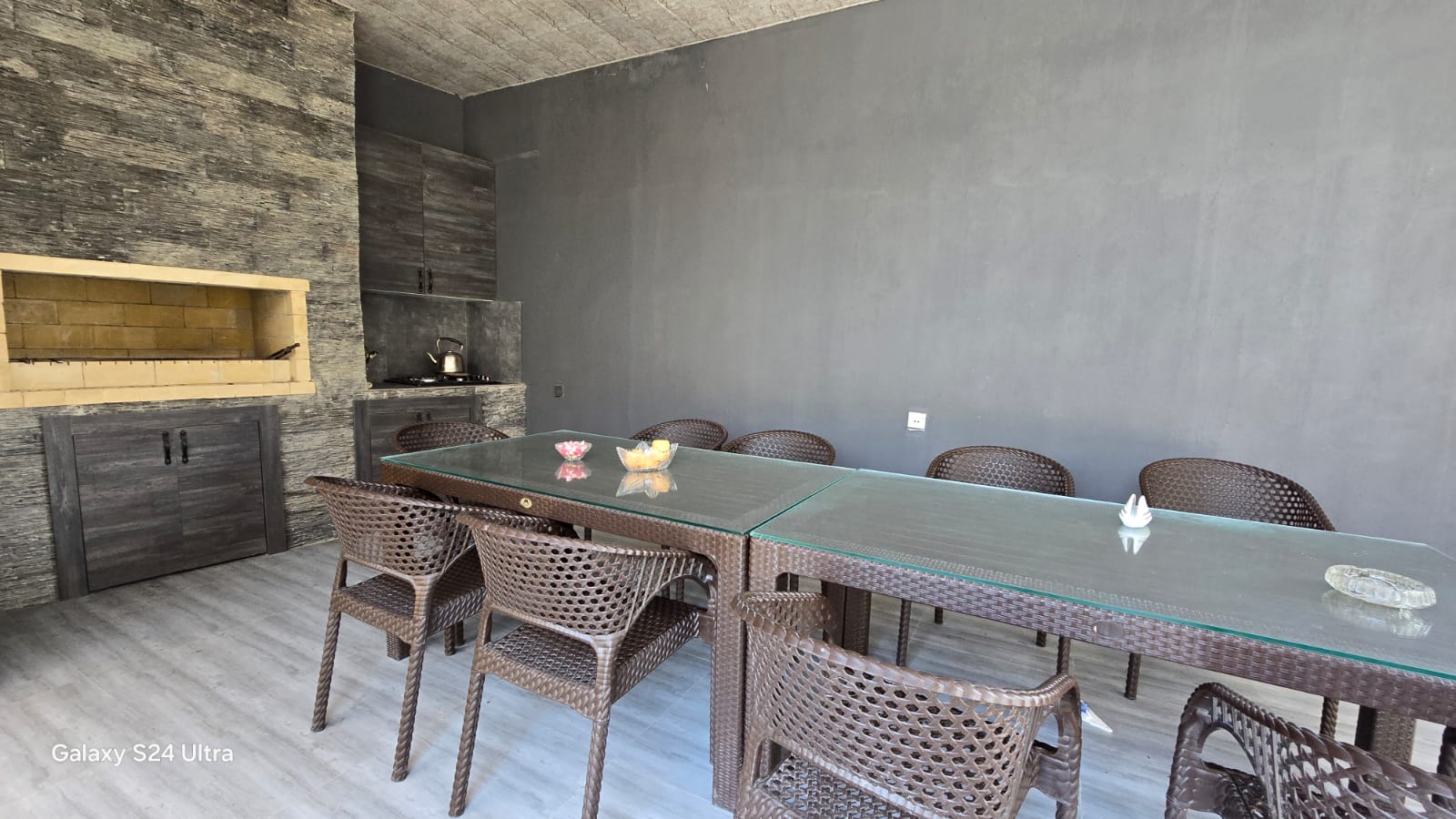 Həyətində : manqalnisi, besedkası , şəlaləsi , filtirli hovuzu və əlavə olaraq sanuzelidə var..