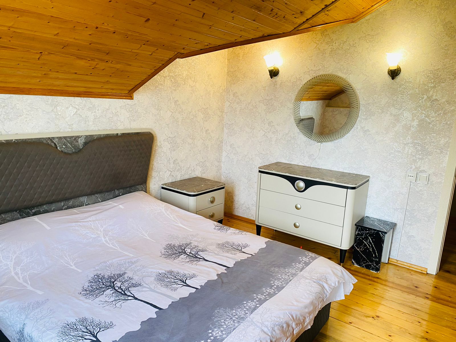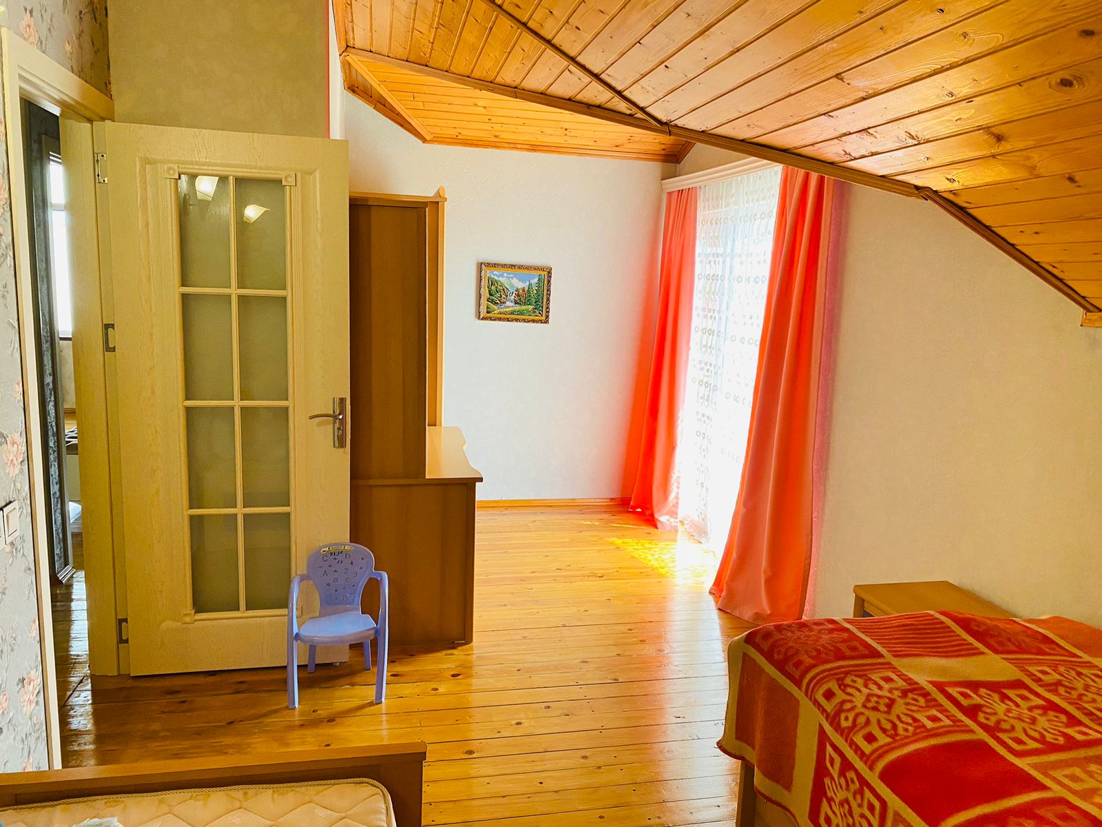 1-ci mərtəbə: Dəhliz, qonaq otaqı, mətbəx və sanitar qovşağından ibarətdir.