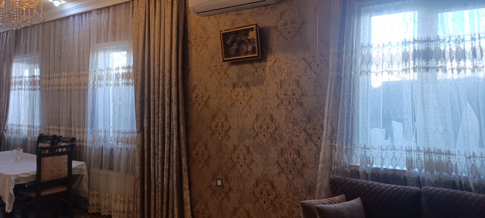 Ümumi tikili sahəsi 85kv.m olan ev dəhliz, 1 qonaq otağı, mətbəx, 3 yataq otağı və sanuzeldən ibarətdir..