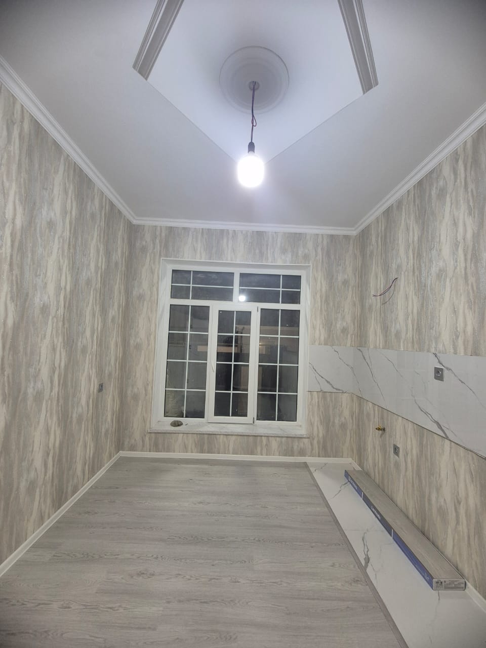 Ev 1 qonaq otağı, 4 yataq otağı, 1 mətbəx, 1 sanuzeldən ibarətdir. Komunallar var və daimidir.