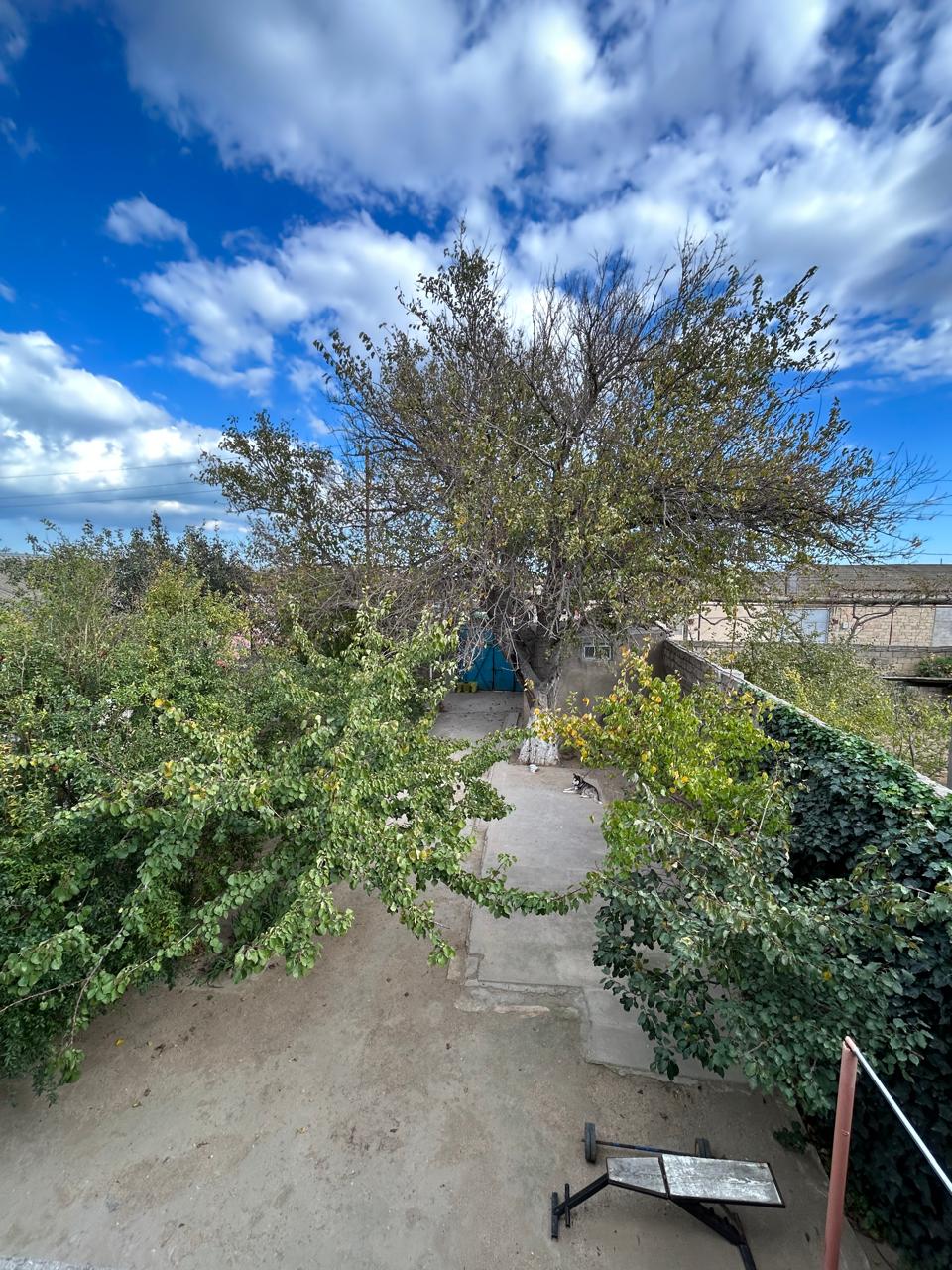 Həyətində müxtəlif növ bar verən meyvə ağacları var.