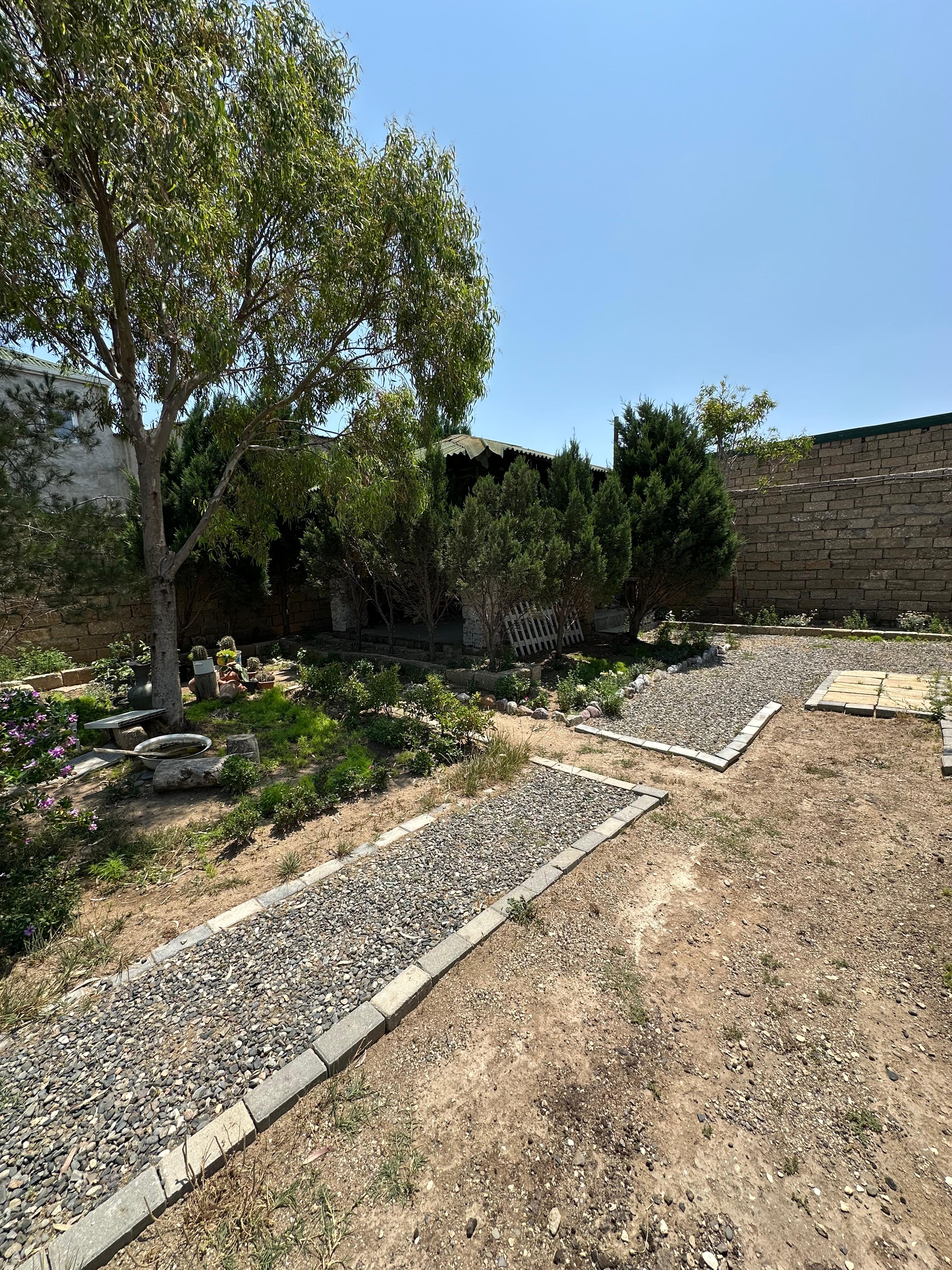 Həyətdə bahalı dekorativ ağacları, su quyusu da var.