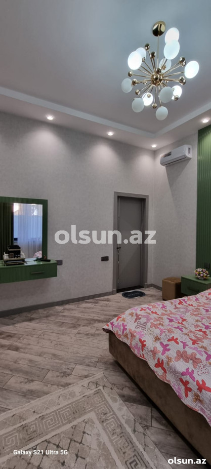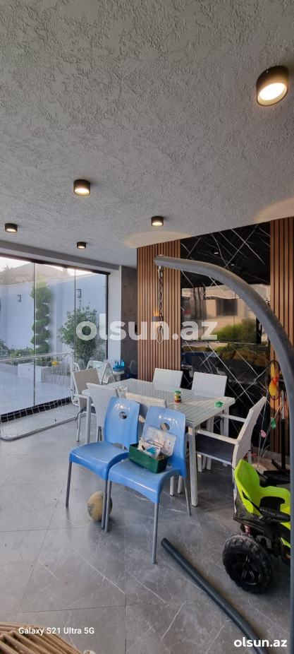 Həyətində 2 maşınlıq qarajı, yay-qış mətbəxi , manqalnisi ,şəlaləsi, filtirli hovuzu , yaşıl zonası və əlavə sanuzelidə var...
