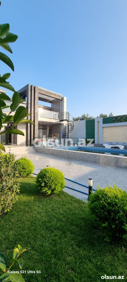 Həyətində 2 maşınlıq qarajı, yay-qış mətbəxi , manqalnisi ,şəlaləsi, filtirli hovuzu , yaşıl zonası və əlavə sanuzelidə var...