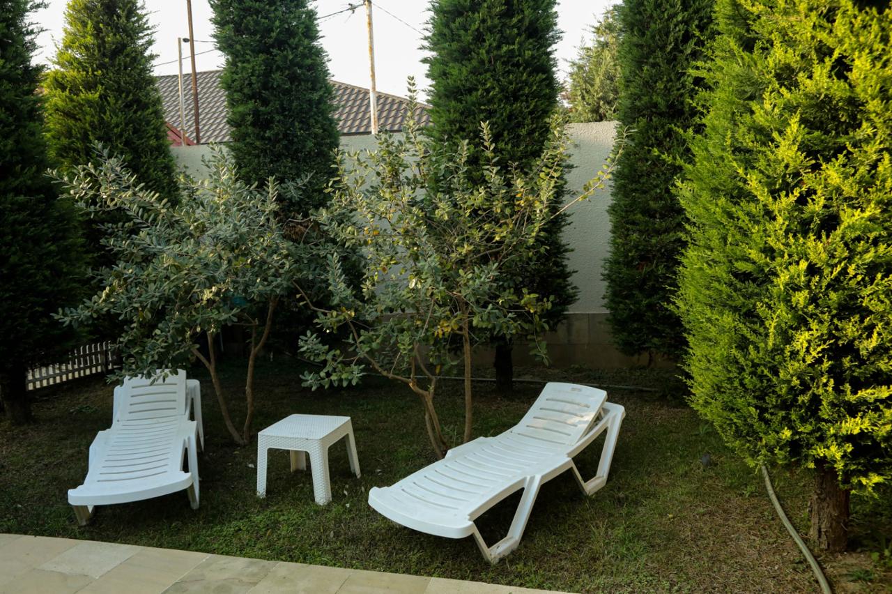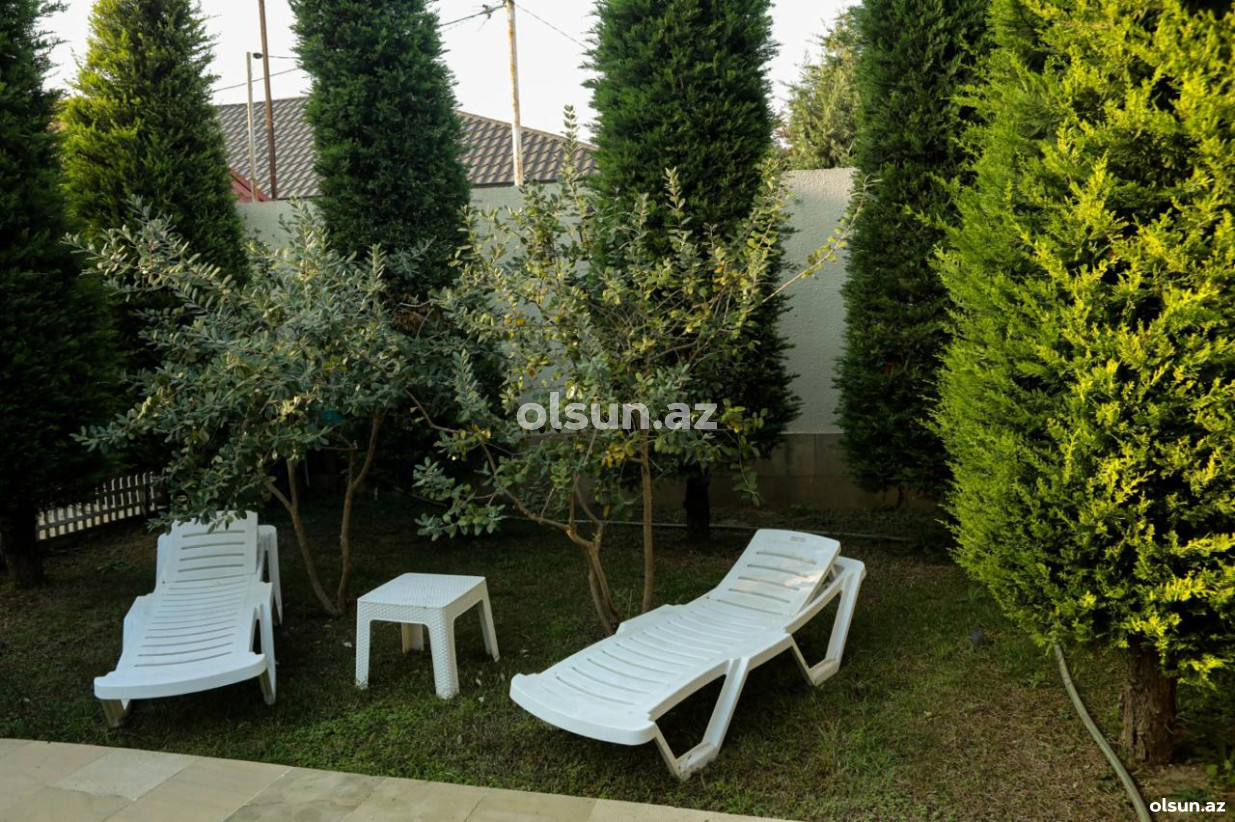 Həyətdə istirahət üçün hər şərait yaradılıb (tennis stolu, yelləncəkli divan, yumşaq oturma dəsti, həyətdə ayrıca şüşəli soyuducu və s. əşyalar).