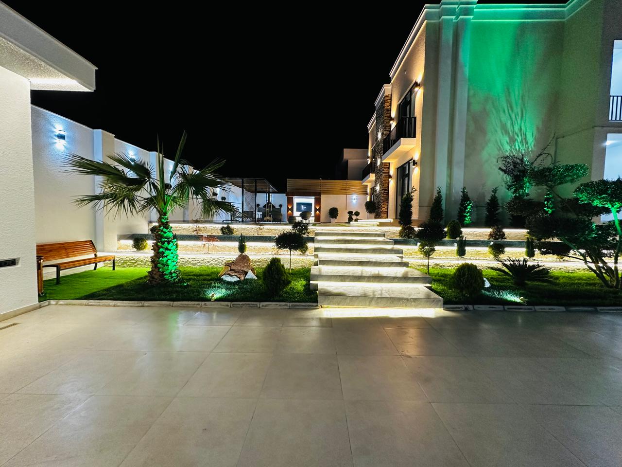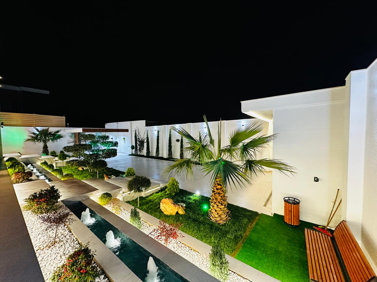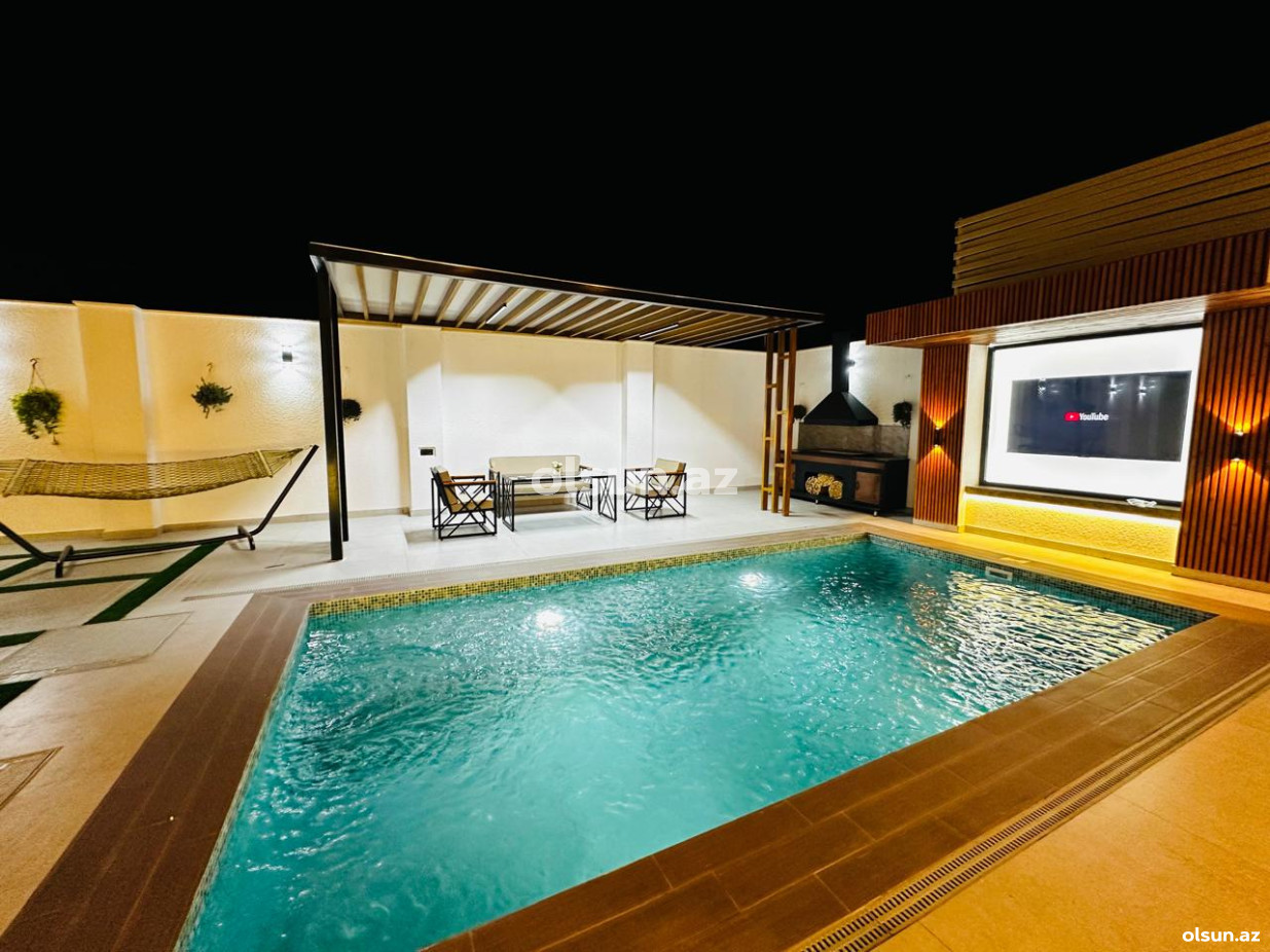 Həyətində filterli hovuzu ,terras ,yay-qış mətbəxi, qaraj, sanuzeli,besedka, manqalxanası movcuddur.