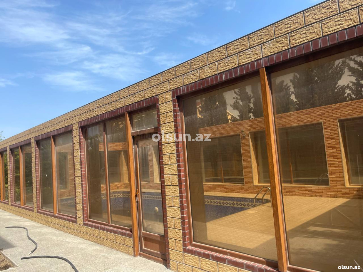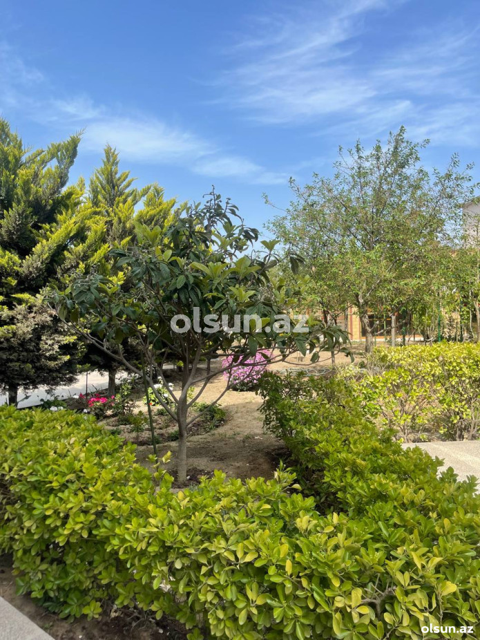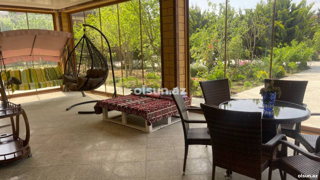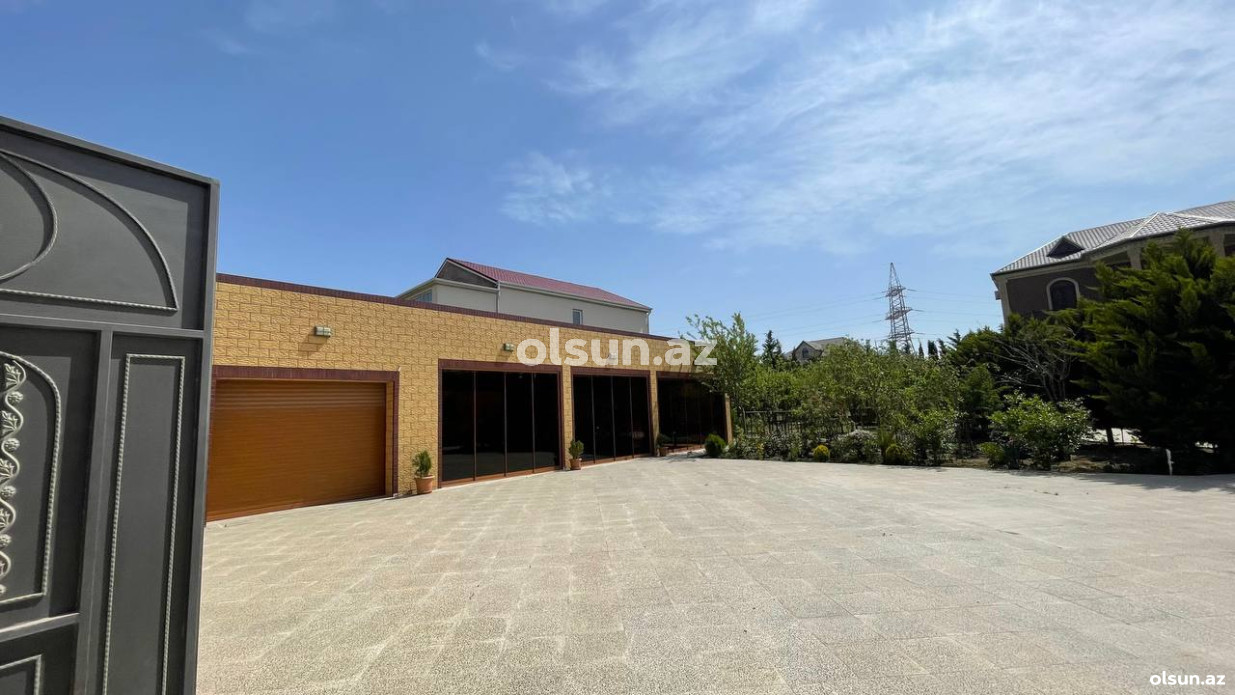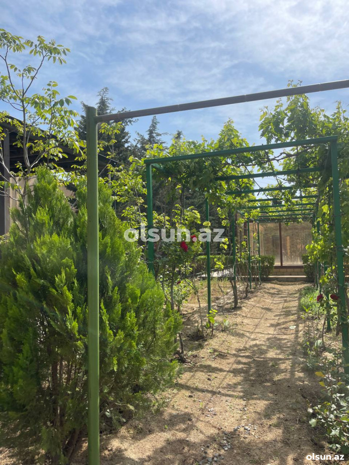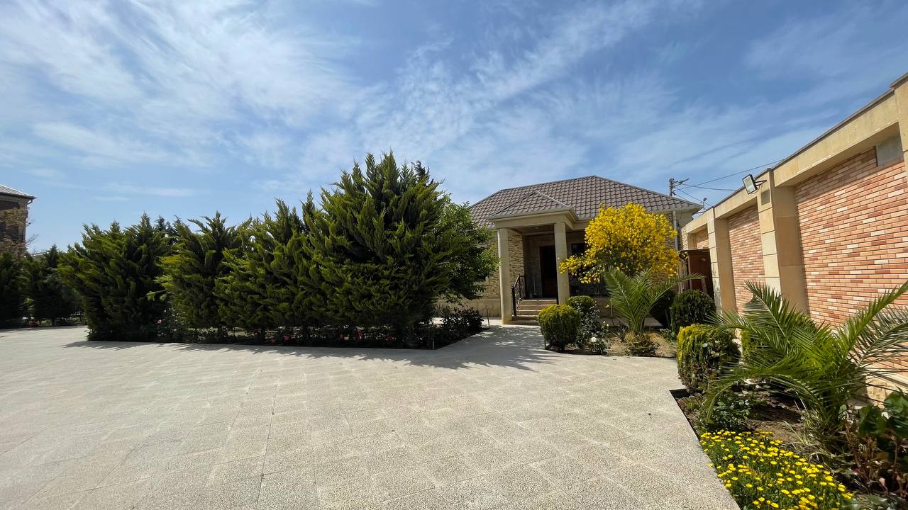 Həyətində geniş 2 paltar dəyişmə və hamamlı istilik sistemli filterli hovuz, manqalxanası, təndir, 8 nəfərlik söhbətgah (besedka), 50 nəfərə qədər qonaq üçün (açılıb bağlanan, istilik keçirməyən xüsusi şüşələrlə) yay-qış mətbəxi, qonaq, yataq, mətbəx, sanuzelli, mühafizəçi evi, qaraj, 16 kamera sistemi, kanalzasiya sistemi, pultla idarə olunan darvazası, dekorativ ağacları və gülləri, sanitar qovşağı, yaşıllıq ərazisi, sensorlu gecə işıqları var.