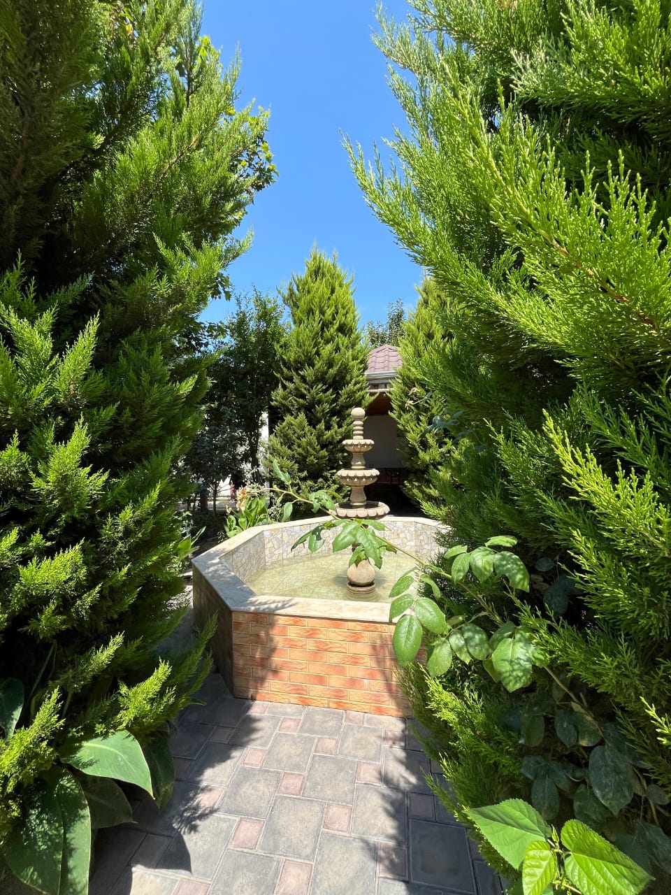 Həyəti dekorativ ağaclar və tamamilə yaşıllıqla əhatə olunub..