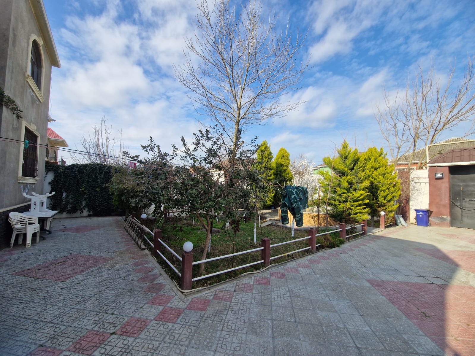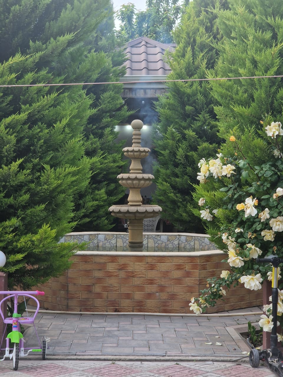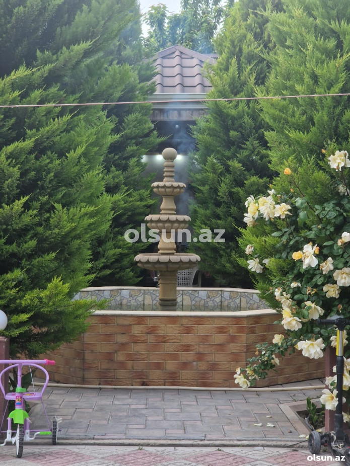 Həyətində besetka, yerüstü hovuz, fantan, 2 böyük zirzəmi və bir maşınlıq qarajı var..