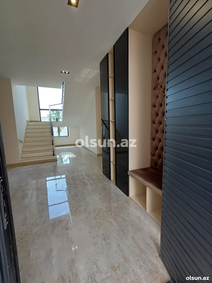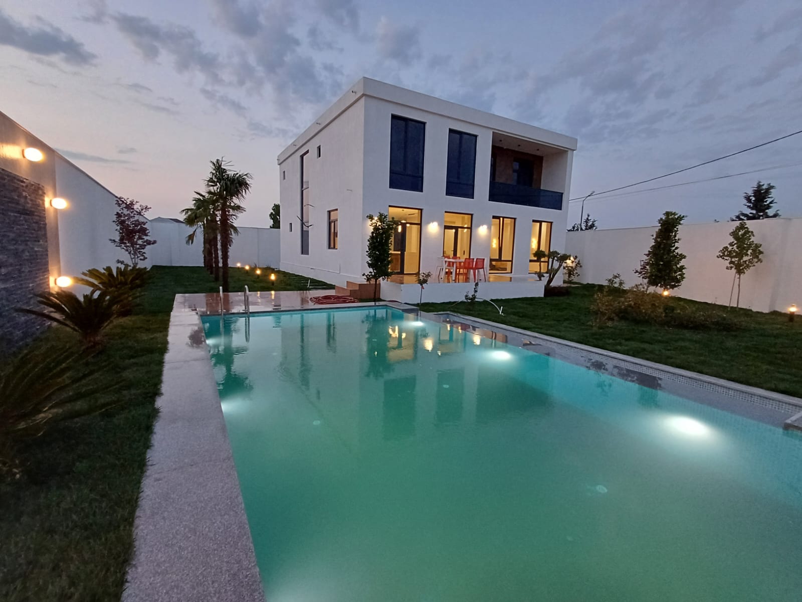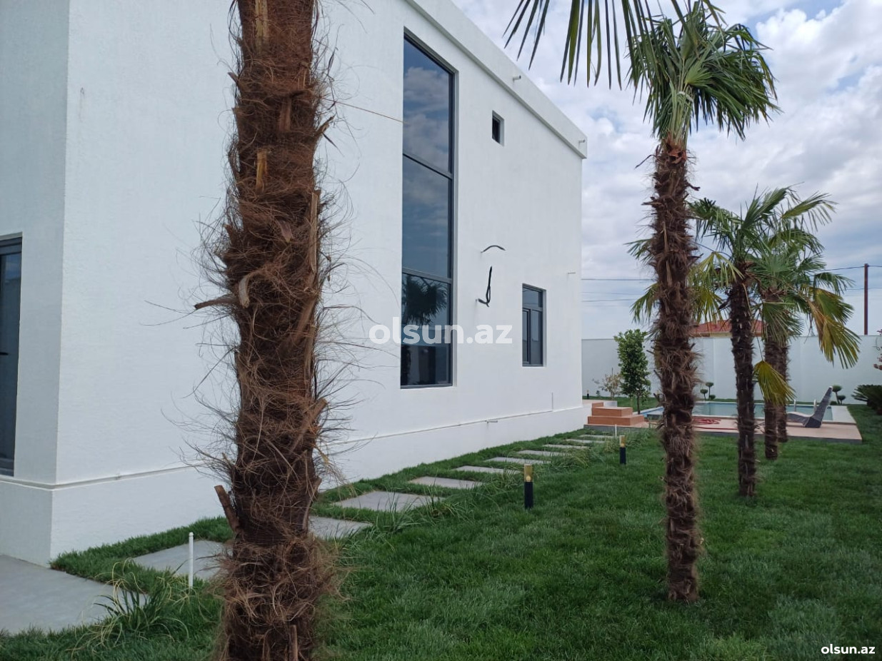 Həyətində : filtirli hovuzu , yaşıl zonası , 2 maşınlıq qarajı , dekorativ ağacları vardır..