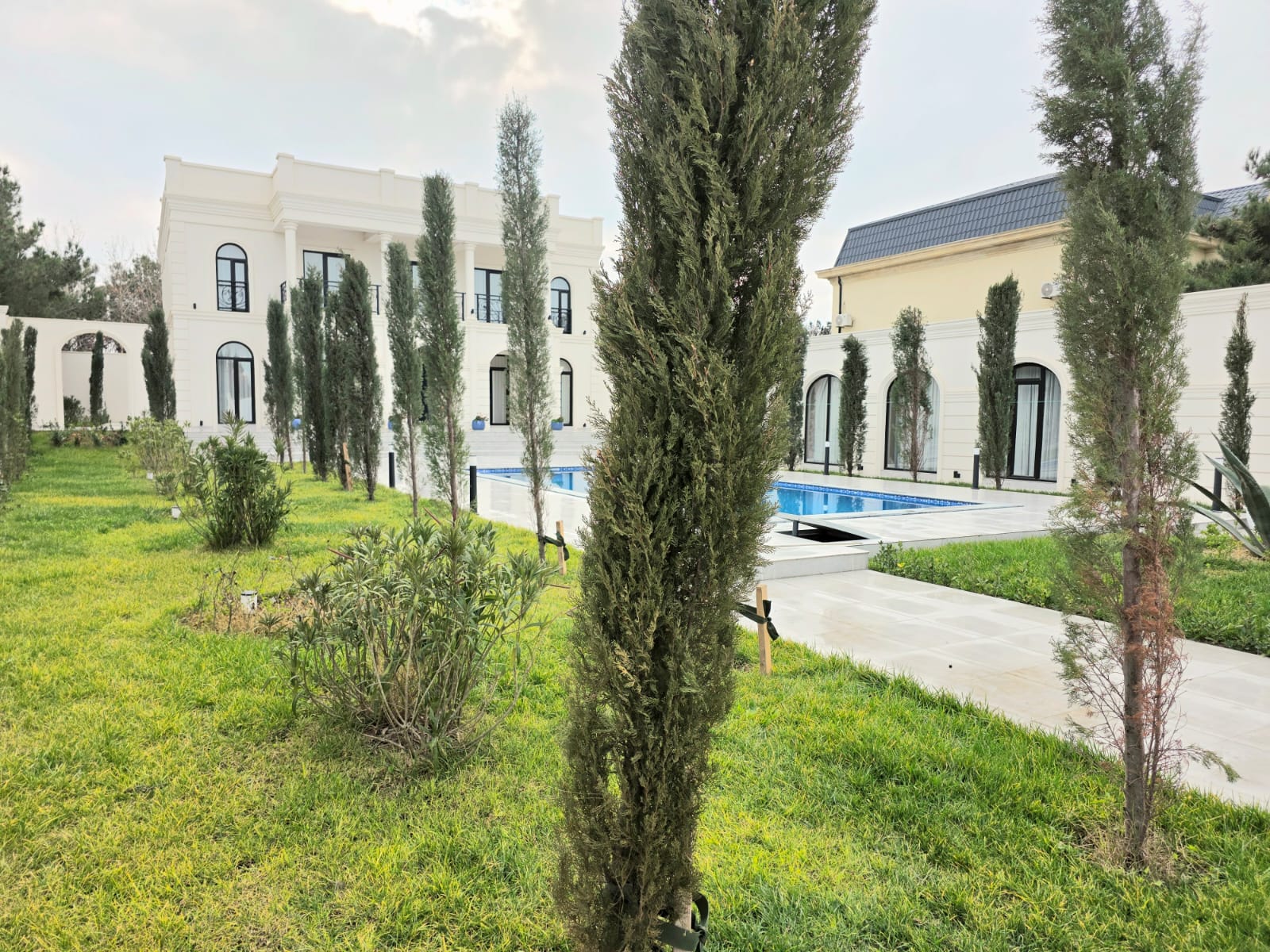 Həyətində Hovuz,Sanuzeli, qaraj, gözətci evi,qapalı bisetkası mətbəxi ilə,manqalxana mövcuddur