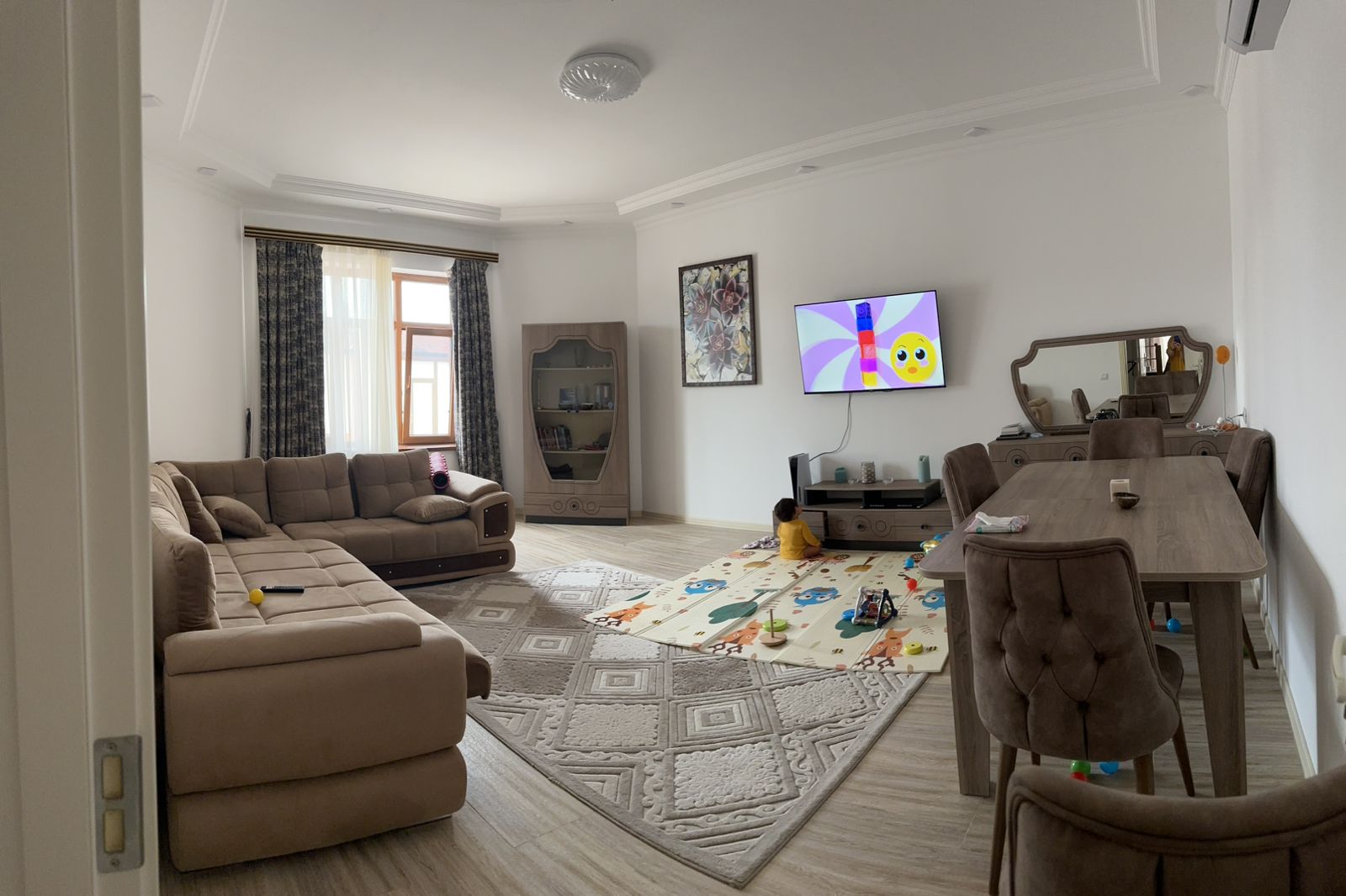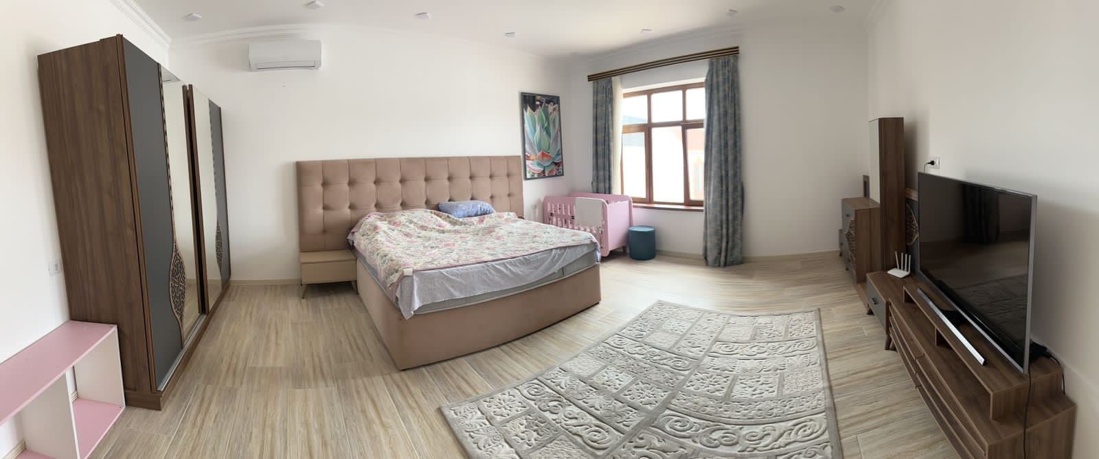 Daxili hissə təmirlidir, geniş zalı, mətbəxi və oturma sahəsi var. Həm hazır istifadə üçün uyğundur, həm də istəyə görə fərqli konseptə uyğunlaşdırmaq mümkündür.
